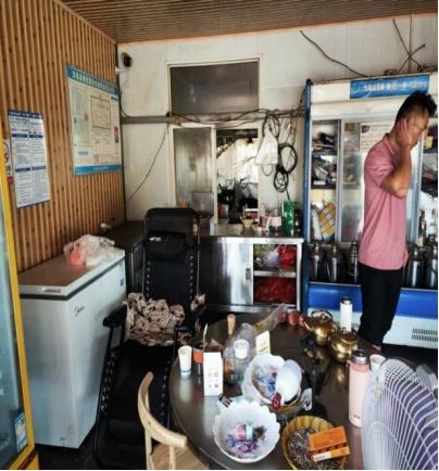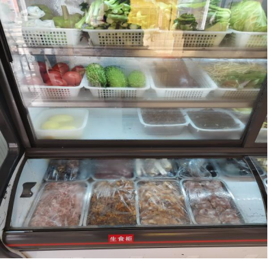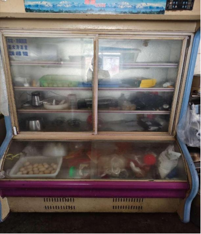 2.点菜柜内摆放辣椒面、水壶等杂物,脏乱差;