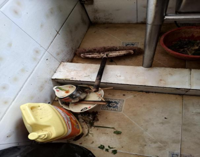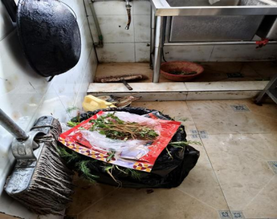 2.操作间垃圾桶未加盖,使用过的碗筷随地摆放,地面环境卫生差;