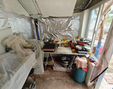 3.后厨操作台杂乱无章,无防尘帘、防蝇帘。
