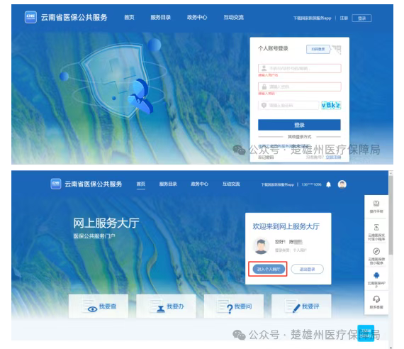 (三)点击在线办理后,跳转到云南医保个人网厅,后续操作流程与个人网厅操作流程一致。