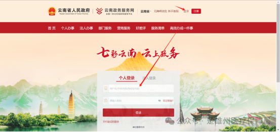 (一)进入云南政务服务平台https://zwfw.yn.gov.cn/portal/#/home点击登录。