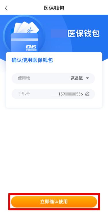 3.核对家人钱包使用地并输入手机号,点击【立即确认使用】开通