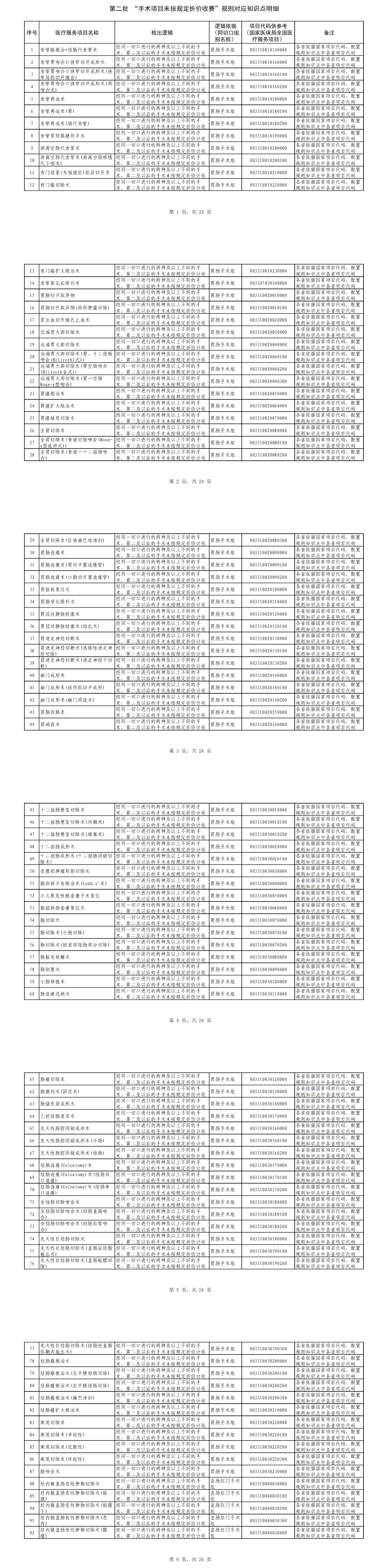 附件:第二批“手术项目未按规定折价收费”规则对应知识点明细