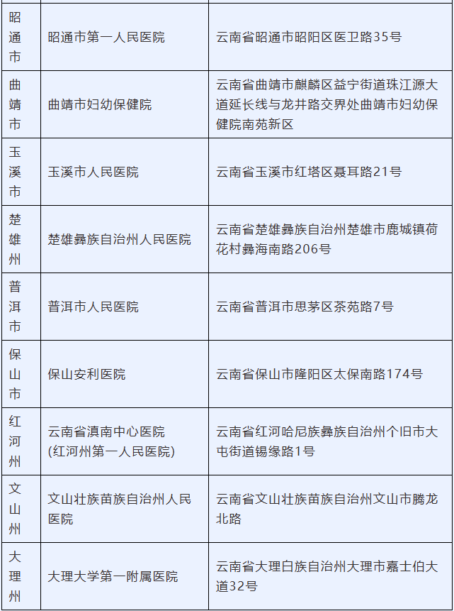 小编梳理了云南省的10个州(市)21家定点医疗机构的详细信息,请动动您的小手,转给有需要的朋友吧!