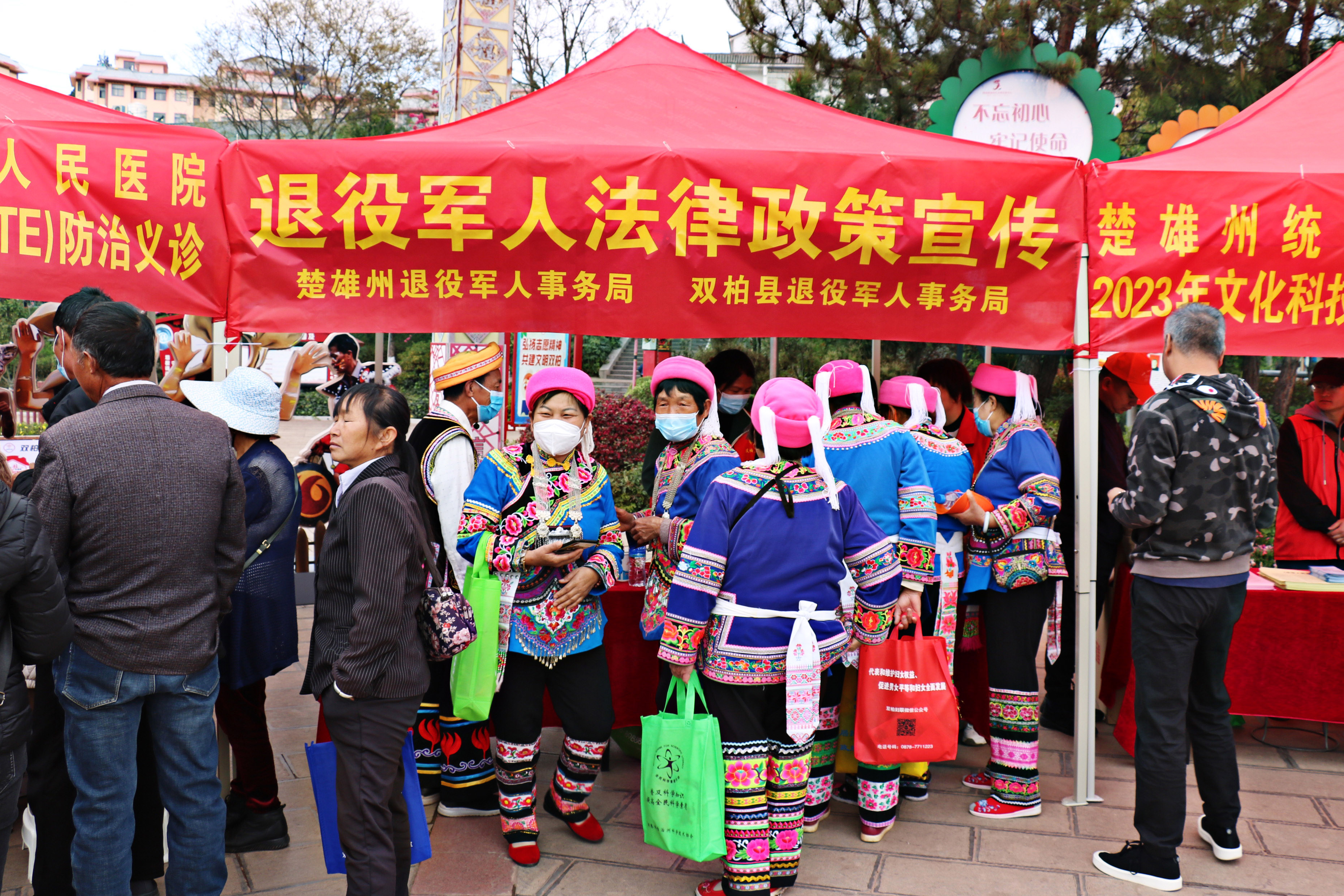 3月16日,楚雄州退役军人事务局、双柏县退役军人事务局以楚雄州2023年文化科技卫生“三下乡”集中示范活动为契机,在双柏县查姆文化广场开展退役军人法律政策宣传活动,为广大退役军人提供优质服务。