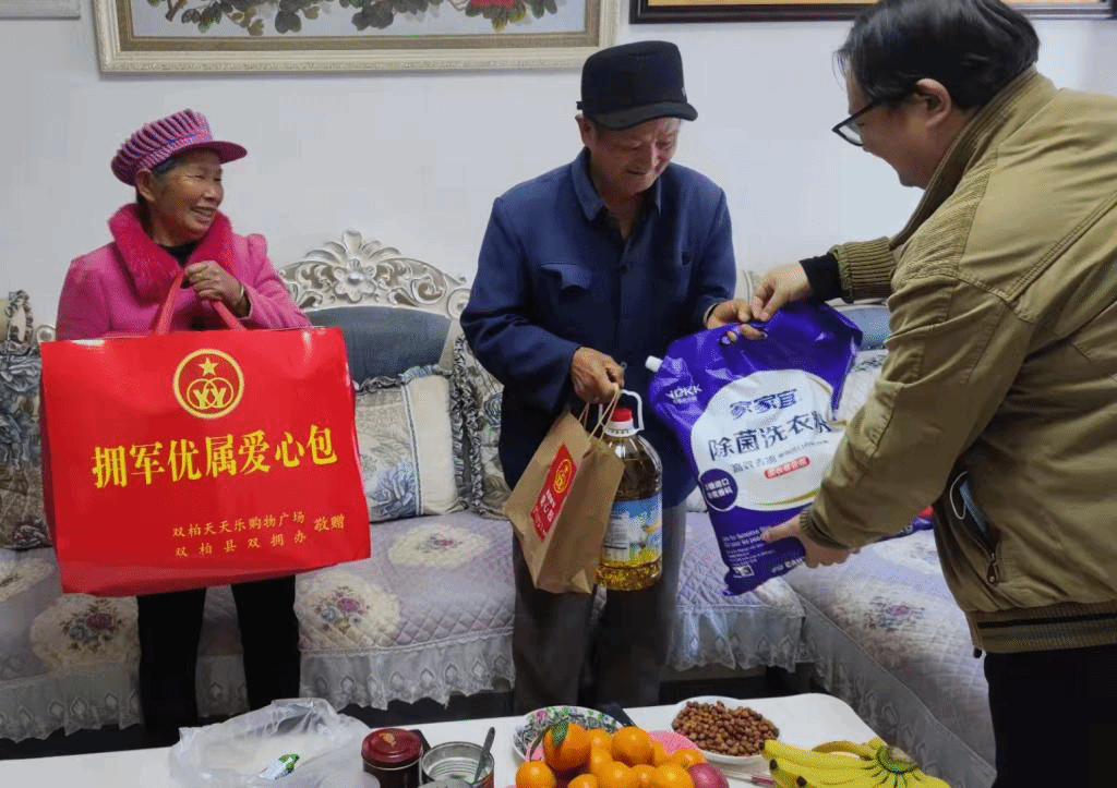 此次活动,采取两种方式为全县的重点优抚对象敬赠“拥军优属爱心包”。一是上门送达,由退役军人事务局、天天乐购物广场、乡镇退役军人服务站相关人员上门为参加过抗日战争、解放战争、抗美援朝的老战士,烈士遗属、因公牺牲军人遗属、病故军人遗属家庭送上一个价值500元的“拥军优属爱心包”。二是进店领取,由符合条件的重点优抚对象到县退役军人服务中心核对身份信息,领取“拥军优属爱心券”后,持券到天天乐购物广场消费满58元即可领取一个价值100元的“拥军优属爱心包”。活动计划为全县600余名重点优抚对象提供价值达68400元的爱心礼品。