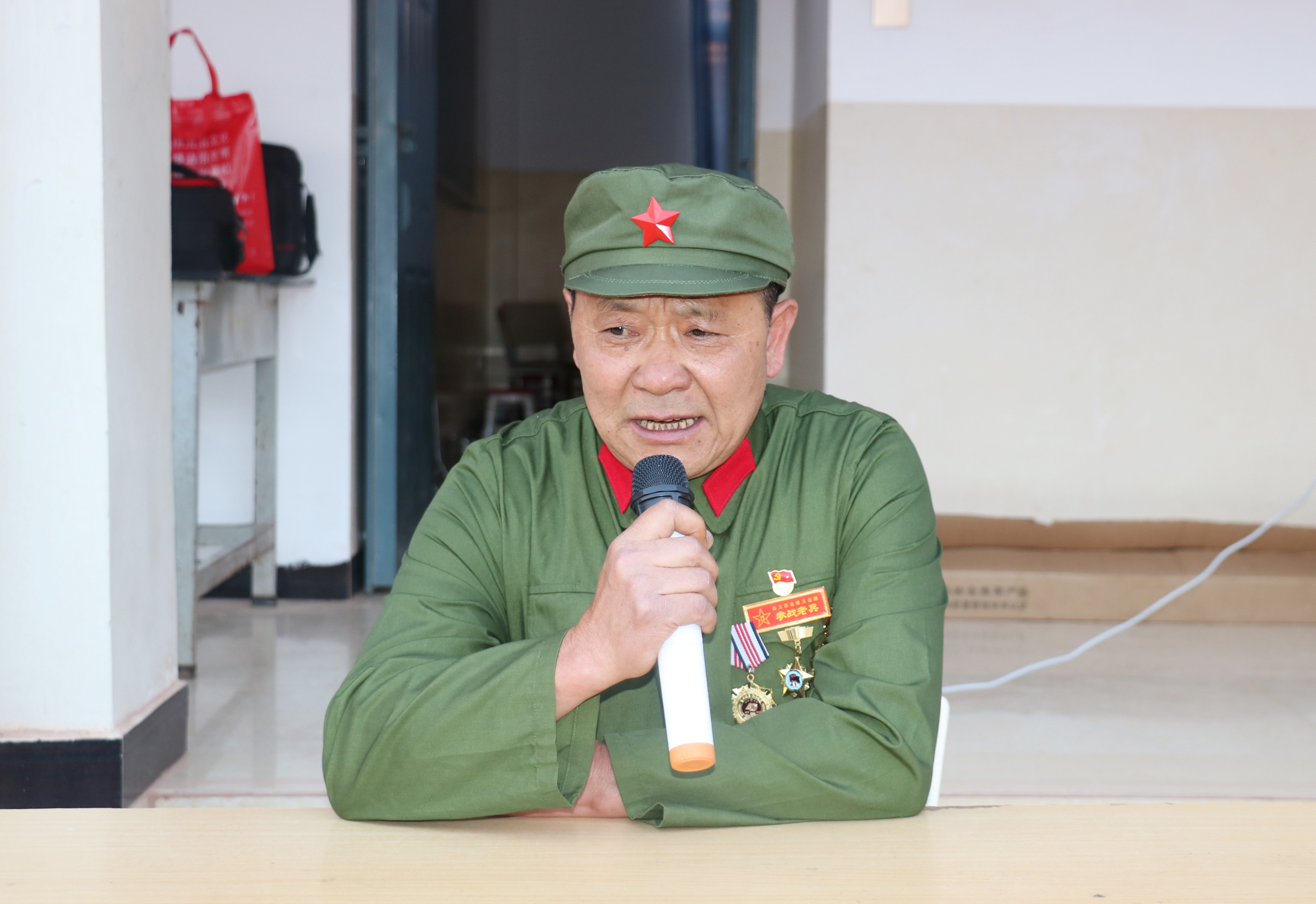 今年57岁的苏伟生循着回忆,缓缓讲述着战火纷飞的日子里,他与战友并肩作战、保家卫国的光荣往昔,他坚定的声音将现场拉回到了那段战火纷飞的峥嵘岁月。用机枪扫射敌人,用肉体踩雷开路,战友的壮烈牺牲,胜利飘扬的战旗……一件件可歌可泣故事,同学们听得眼睛都不眨一下。
