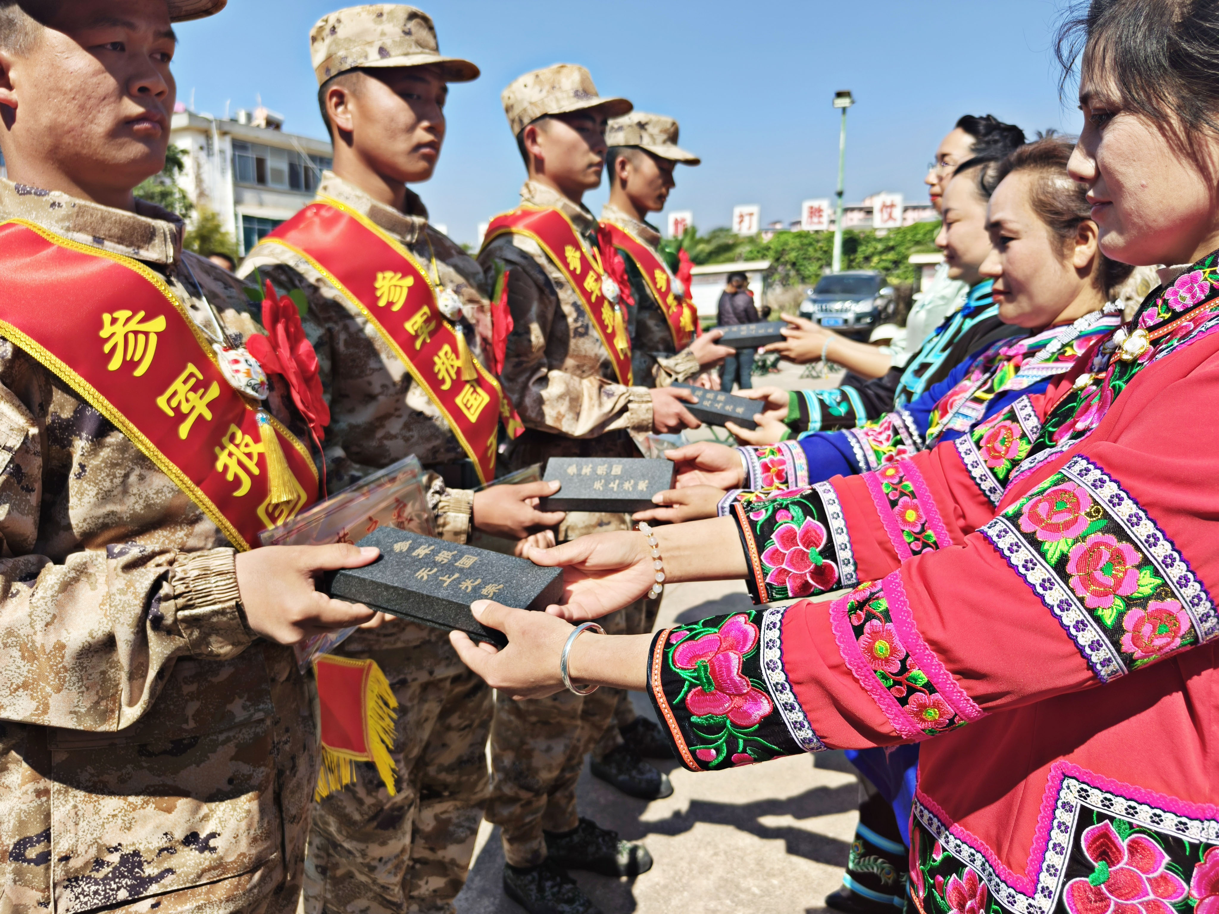 投身军营、报效祖国,是每个热血青年的光荣义务和神圣职责。为表达对当代最可爱的人的敬意,县妇联在得知2024年春季新兵入伍出发的时间后,组织“绣娘”,飞针走线,精心制作了一批彝绣荷包,并在欢送仪式上,把连夜赶制的精美彝绣荷包送到即将启程的新兵手中。