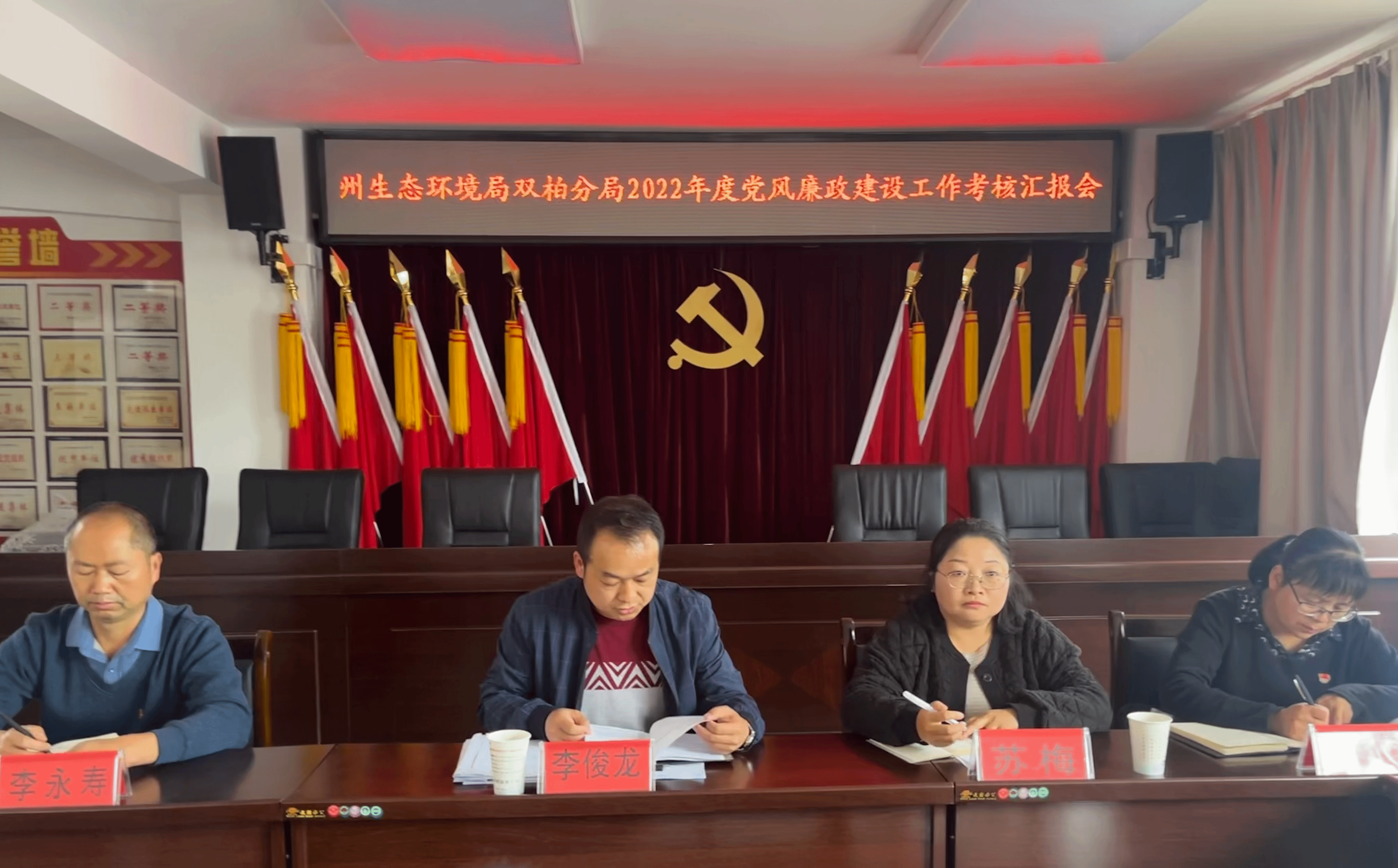 会议听取了州生态环境局双柏分局2022年度党风廉政建设责任制落实情况汇报,州生态环境局双柏分局党组成员、副局长李铭同志代表局党政班子进行了现场述责述廉,其他班子成员进行了书面述责述廉。并开展了党政班子及党政班子成员2022年度落实党风廉政建设责任制情况的民主测评。
