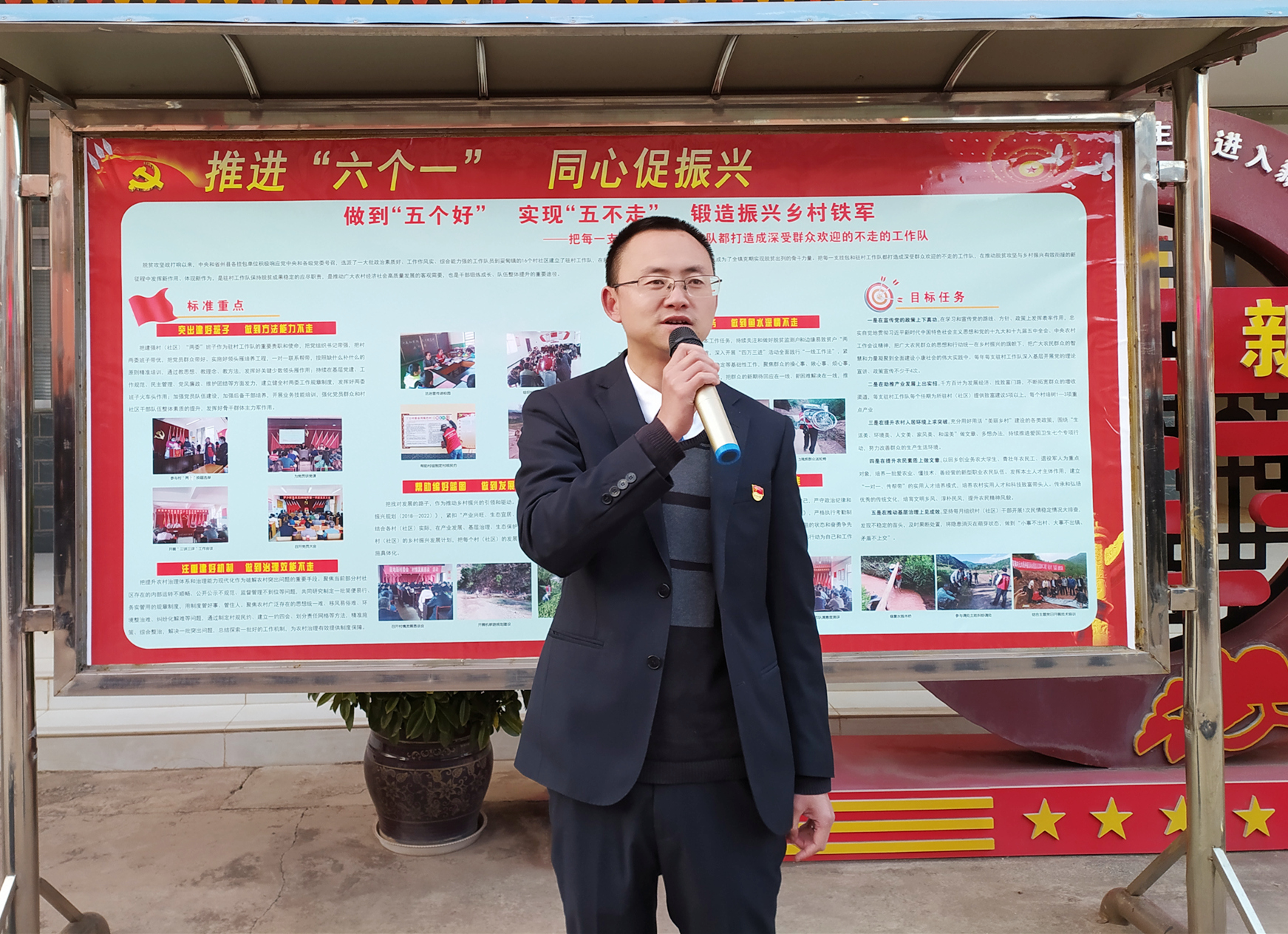 镇党委委员、镇人民政府副镇长谭家安以“有主产业,促增收好,‘一村一业’集群闪耀”为主题,对“让每个村成为产业发展示范村”的标准重点和目标任务进行了介绍和安排;以“五美并举,内外兼具,激发美丽乡村新活力”为主题,对“让每一户农舍都建成美丽的小康庭院”的标准重点和目标任务进行了介绍和安排;以“强素质,促发展,全面培育乡村振兴主力军”为主题,对“让每一名农民都成为新型职业农民”的标准重点和目标任务进行了介绍和安排;镇党委委员、组织委员李家龙以“强引领,重服务,促治理,打造坚强战斗堡垒”为主题,对“把每一个基层党组织建成带领群众脱贫致富的坚强战斗堡垒”的标准重点和目标任务进行了介绍和安排;镇党委副书记蒋彪以“留下‘五个好’,实现‘五不走’,锻造乡村振兴铁军”为主题,对“把每一支挂包和驻村工作队都打造成深受群众欢迎的不走工作队”的标准重点和目标任务进行了介绍和安排;镇党委委员、政法委员、镇人民政府副镇长何荣东以“善治善管风清正,邻里和谐喜乐居”为主题,对“把每个村都建设成为平安乡村”的标准重点和目标任务进行了介绍和安排。