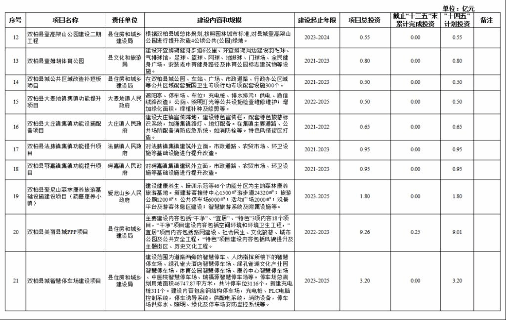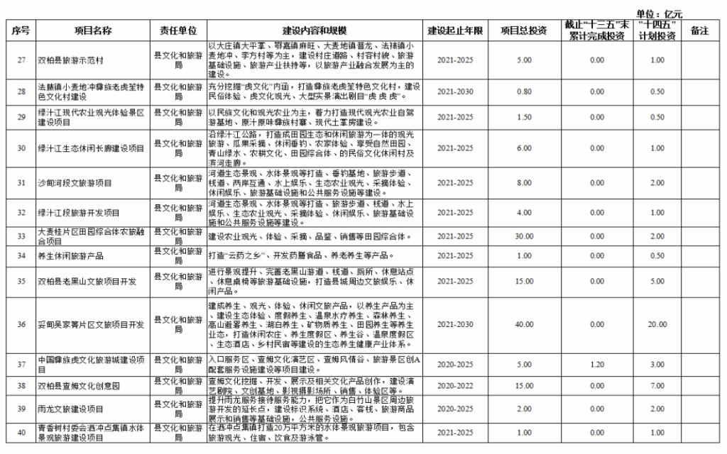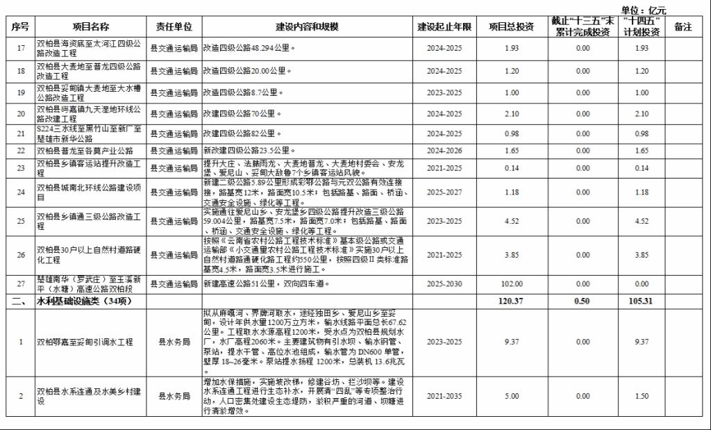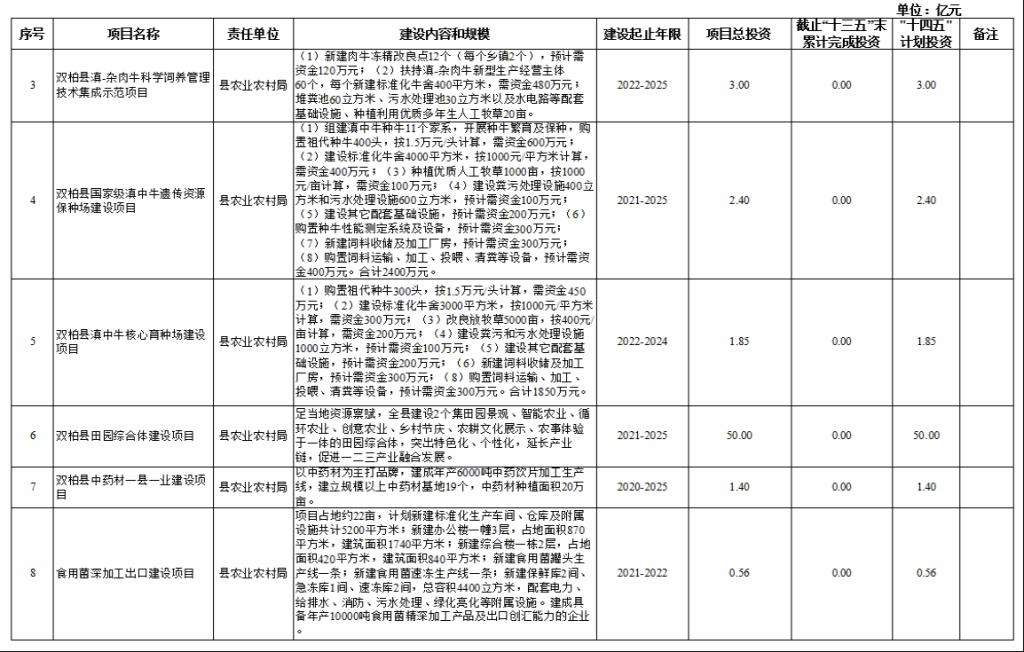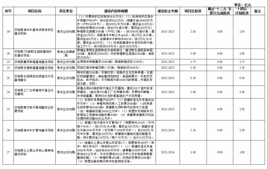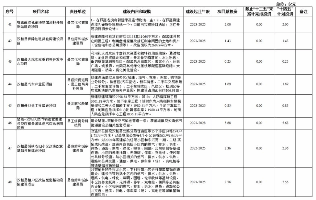 双柏县“十四五”重大项目库规划情况说明