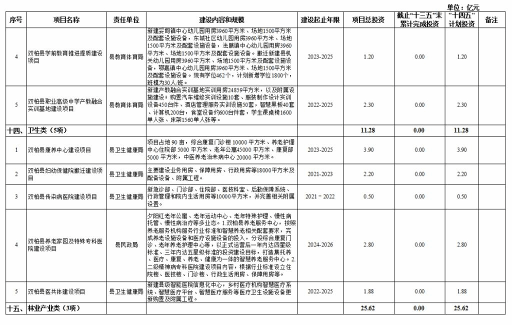 十四、卫生类项目5项,项目总投资11.28亿元,“十四五”期间计划投资11.28亿元。