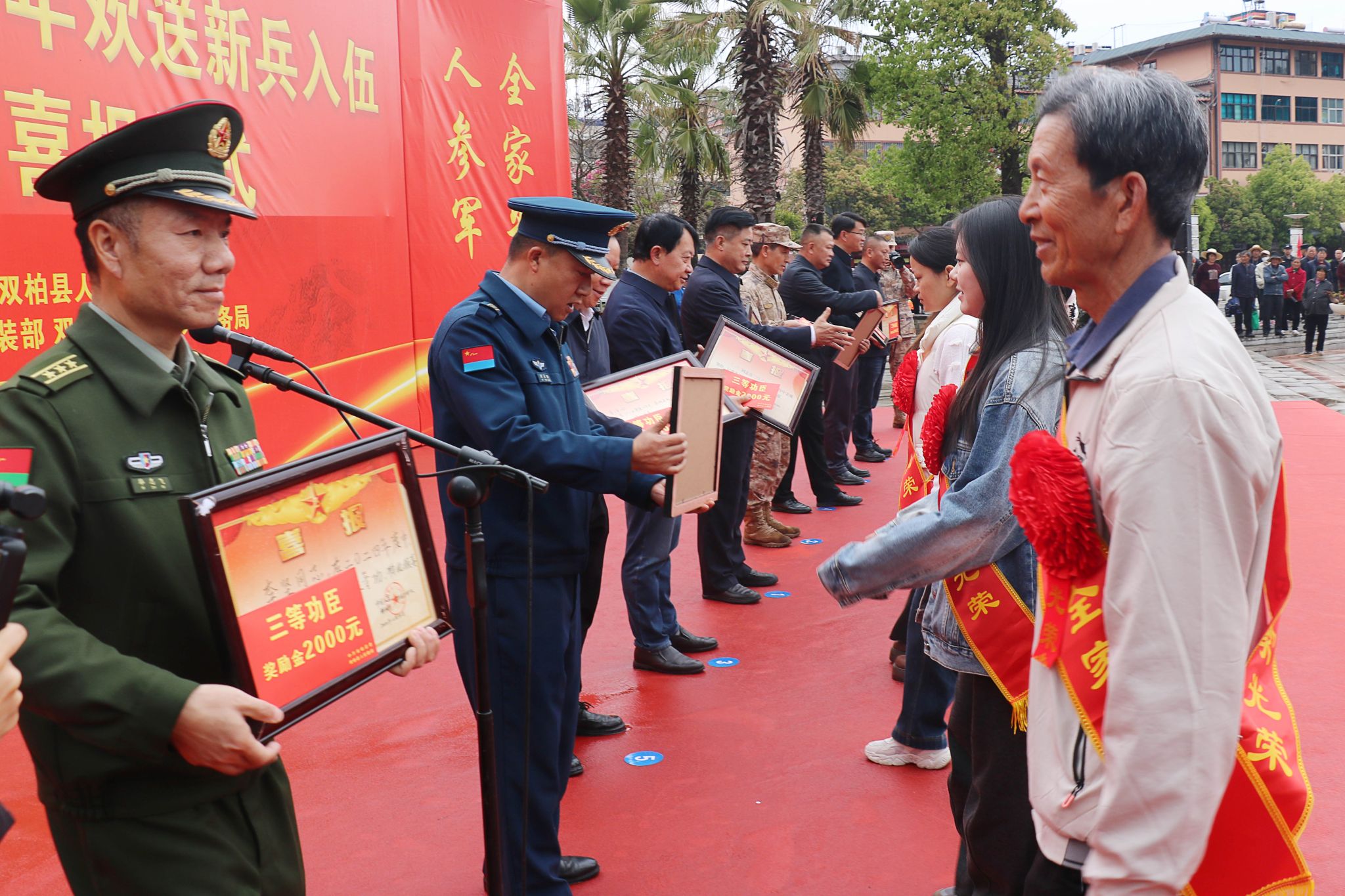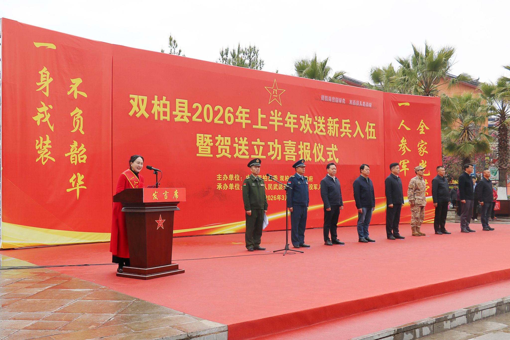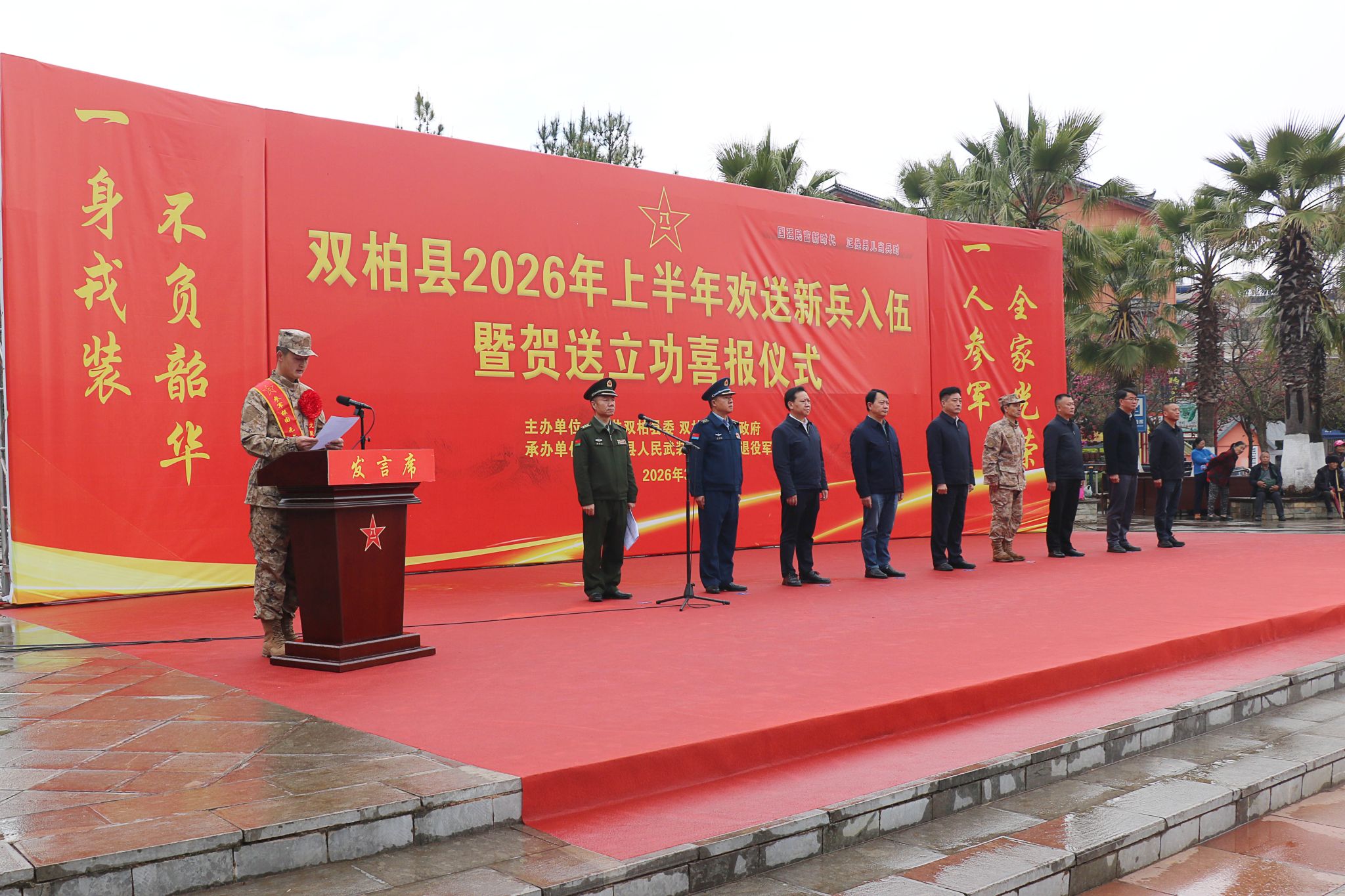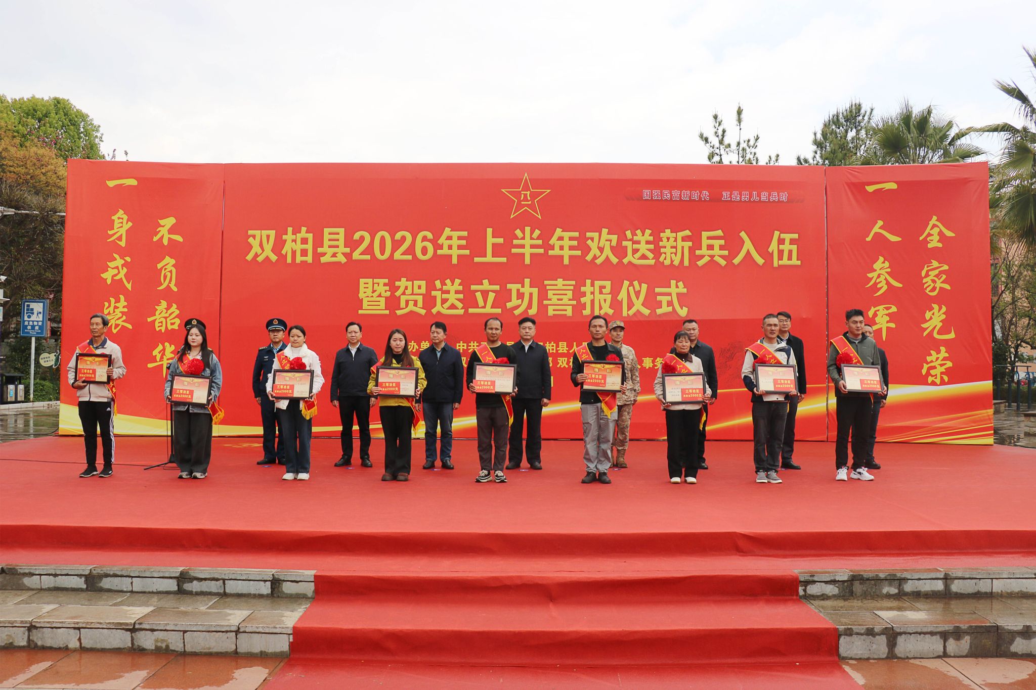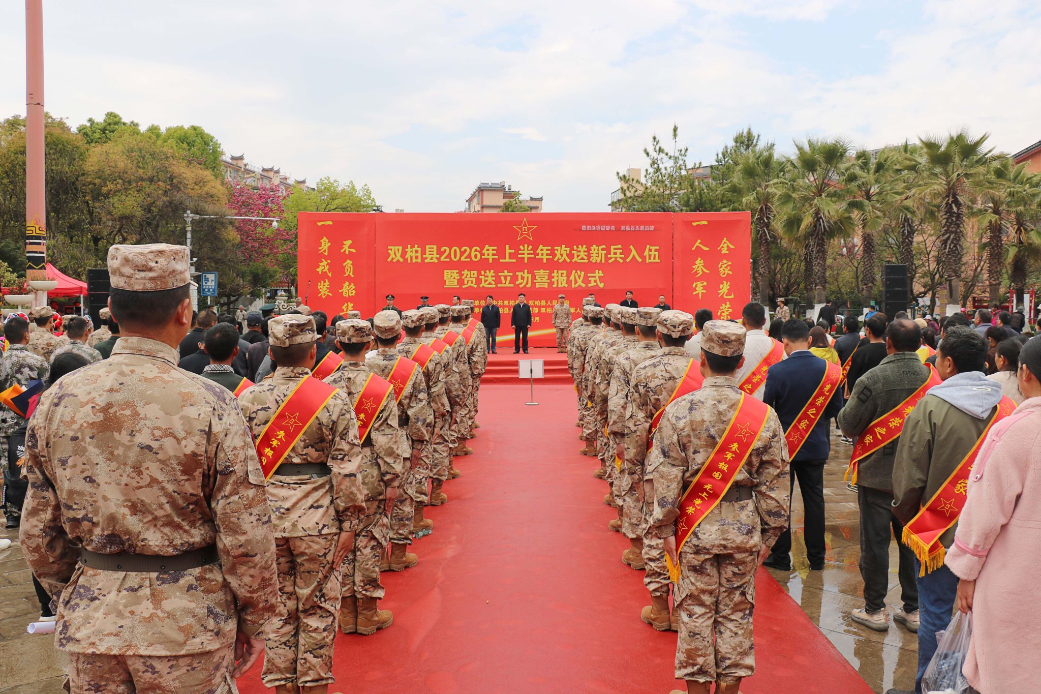 为弘扬拥军优属优良传统,营造“一人参军、全家光荣”的社会氛围,同时表彰立功受奖现役军人家庭,增强军人军属荣誉感。3月17日下午,双柏县在县城查姆广场隆重举行2026年上半年欢送新兵入伍暨贺送立功喜报仪式。
