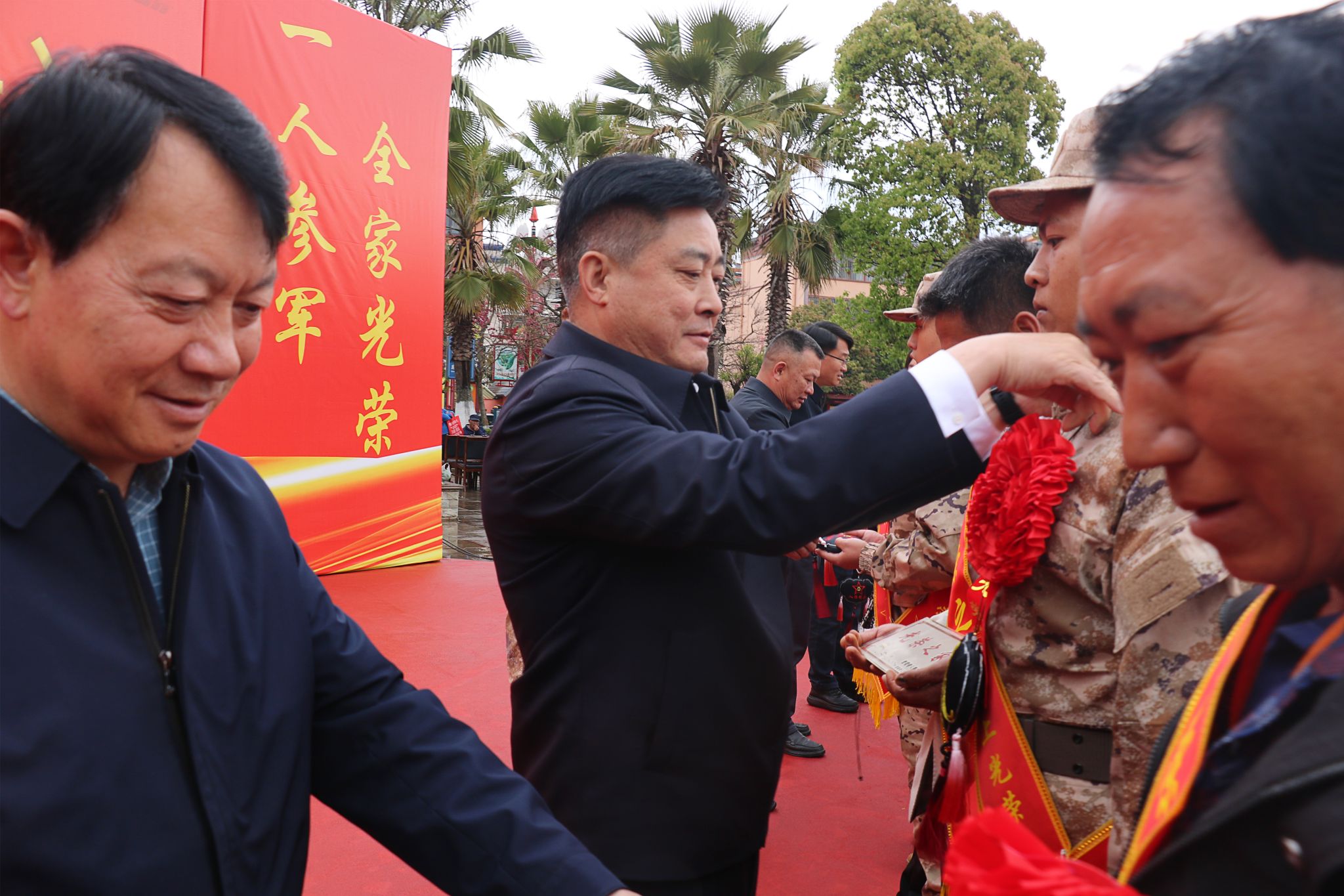县人大常委会主任王为周、县政协主席王景书、楚雄军分区动员上校处长胡远过和部分县领导,县委退役军人事务工作领导小组成员单位主要领导、各乡镇武装部部长、20名退役军人代表参加仪式。