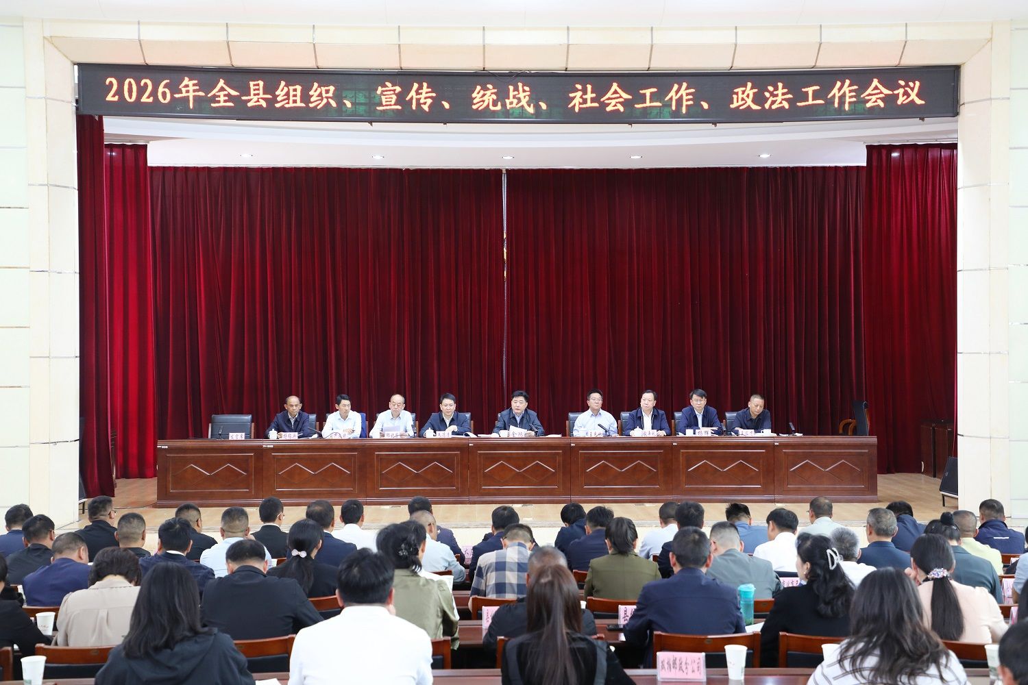 4月7日,2026年全县组织、宣传、统战、社会工作、政法工作会议召开,会议总结回顾了过去一年工作,安排部署今年工作。