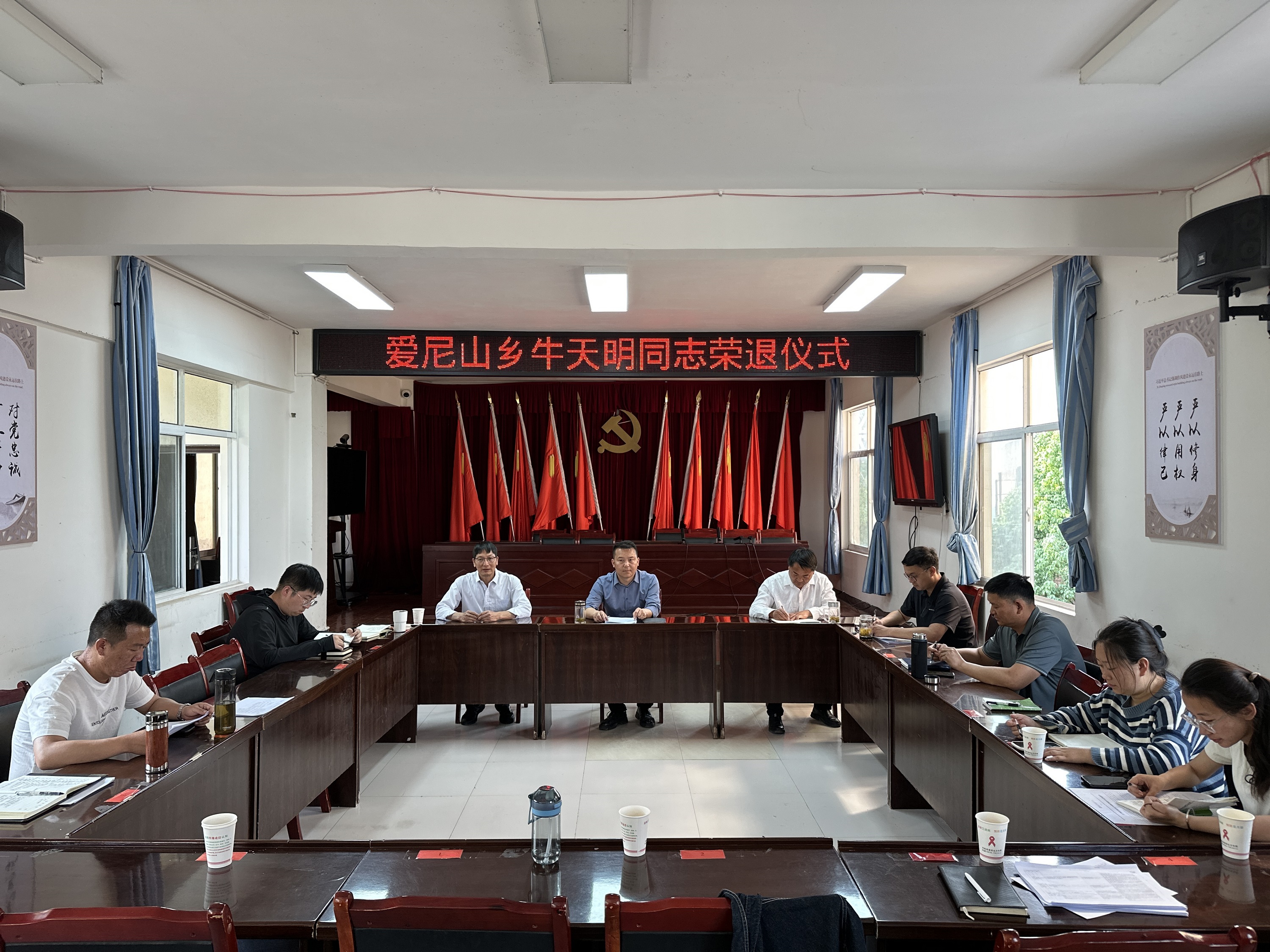为深入贯彻落实习近平总书记关于老干部工作的重要论述精神,增强离退休干部的政治荣誉感、组织归属感和生活幸福感,表达对退休干部的敬意和感激之情。4月27日下午,爱尼山乡召开退休干部座谈会,为乡农业农村发展服务中心工作人员牛天明同志举行光荣退休仪式。乡党委书记杨祖龙主持会议,在家的党政班子成员和干部职工代表参加会议。