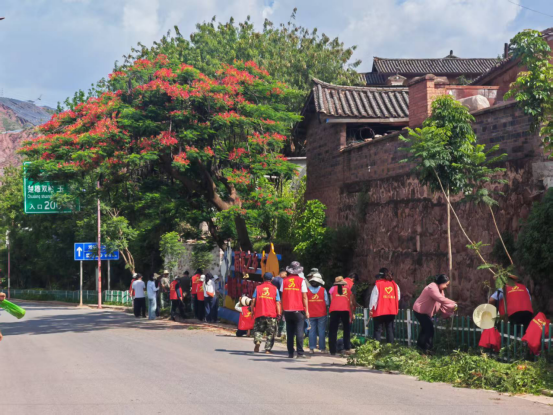 聚焦集镇闲置空地,在高速路入口、绿化带等地周围,党员干部、公益性岗位人员与群众志愿者密切配合,有序种植万寿菊,并划分区域管护责任,由专人进行护理,道路两侧闲置土地被充分利用,以点带面、全域开花。