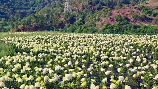 柏子村土地资源丰富,气候宜人,为中华木绣球的种植提供了理想环境。植盛农业正是看中了这个自然优势,与村委会流转了50余亩土地专门打造绣球花基地。如今,这里不仅带动了90余名群众实现家门口就业,更促进了村集体经济的发展。据植盛农业负责人介绍,基地正朝着集观赏、销售、研学于一体的综合性园区方向发展,让“冰淇淋花”既扮靓乡村,又鼓实乡亲们的钱袋子。