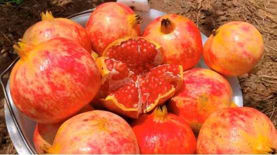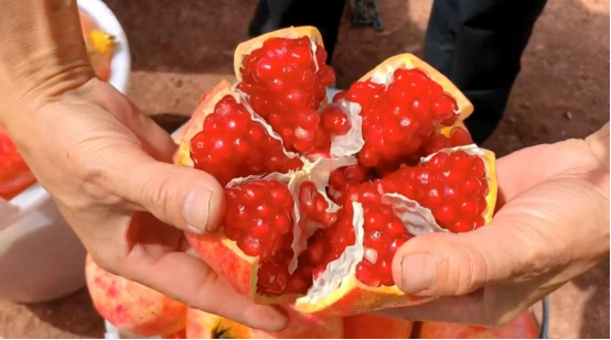 走近细看,大庄的石榴果大皮薄,轻轻一掰,“咔嚓”一声,便能看到里面紧密排列的石榴籽。它们颗颗饱满圆润,如红宝石般晶莹剔透,在阳光的映照下,闪烁着迷人的光泽。抓一把放入口中,轻轻一咬,汁水瞬间在齿间爆开,甜蜜的滋味瞬间蔓延至整个口腔,那脆爽的口感,伴随着恰到好处的微酸,刺激着味蕾,让人欲罢不能,每一口都是满满的幸福与满足。