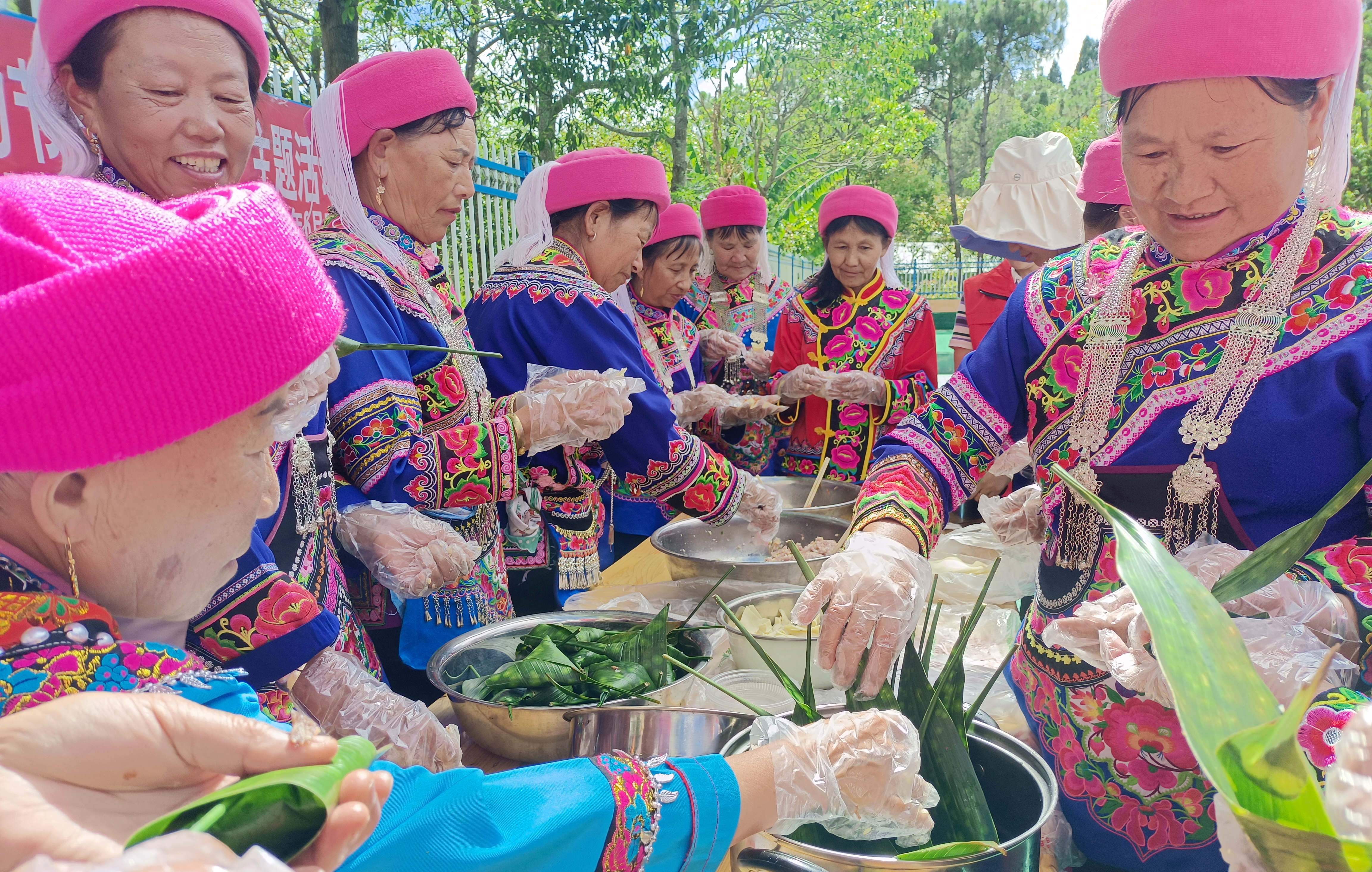 各村(社区)结合实际,开展包粽子、慰问活动温暖人心,精彩纷呈。在查姆社区,身穿彝族服装的文艺表演队加入了包粽子的行列,大姐们有说有笑,共同庆祝即将到来的端午。“我们听说社区在组织开展端午节活动,就想着一起来参加,不仅包粽子,我们一会还要表演节目,跳花鼓舞呢…”尹大姐开心地说。