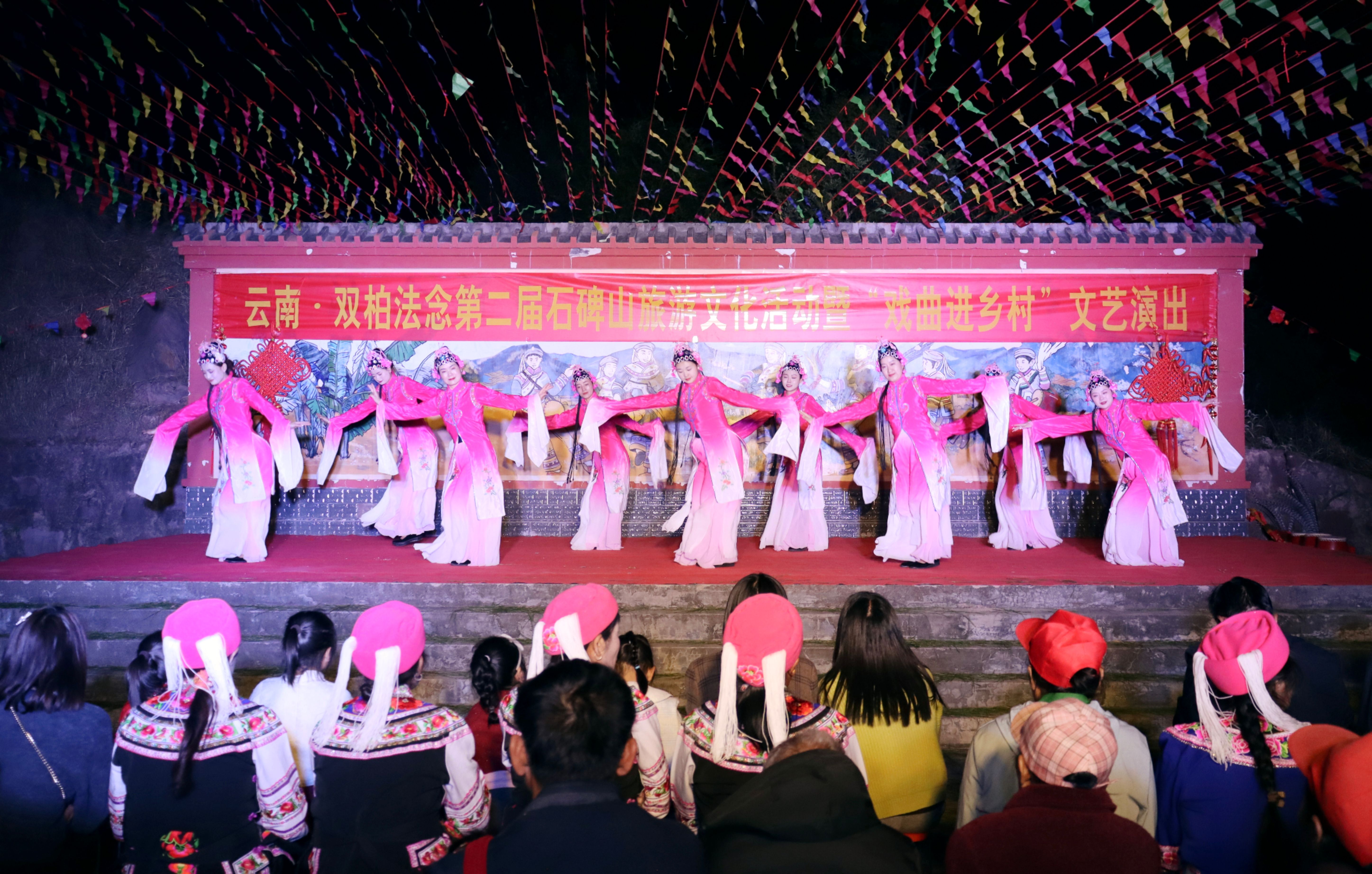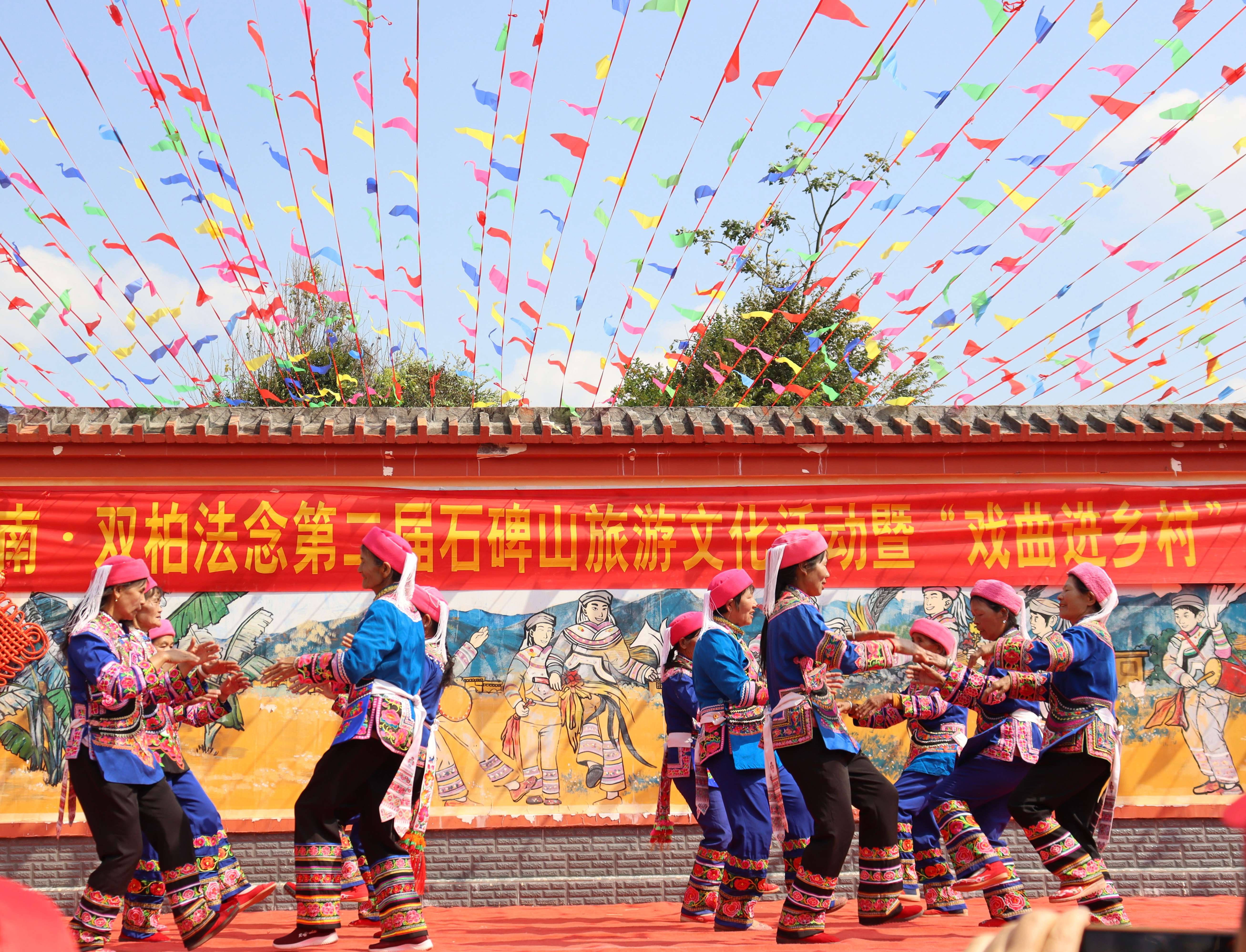 法念村委会位于石碑山脚下,每年正月十八当天,都由群众自发组织举办民俗节庆活动。今年的石碑山旅游文化活动,除精彩的民间文艺演出外,还有钓鱼比赛、捉鹅比赛、登山踏春等活动内容,为嘉宾和游客带来沉浸式的欢乐体验。