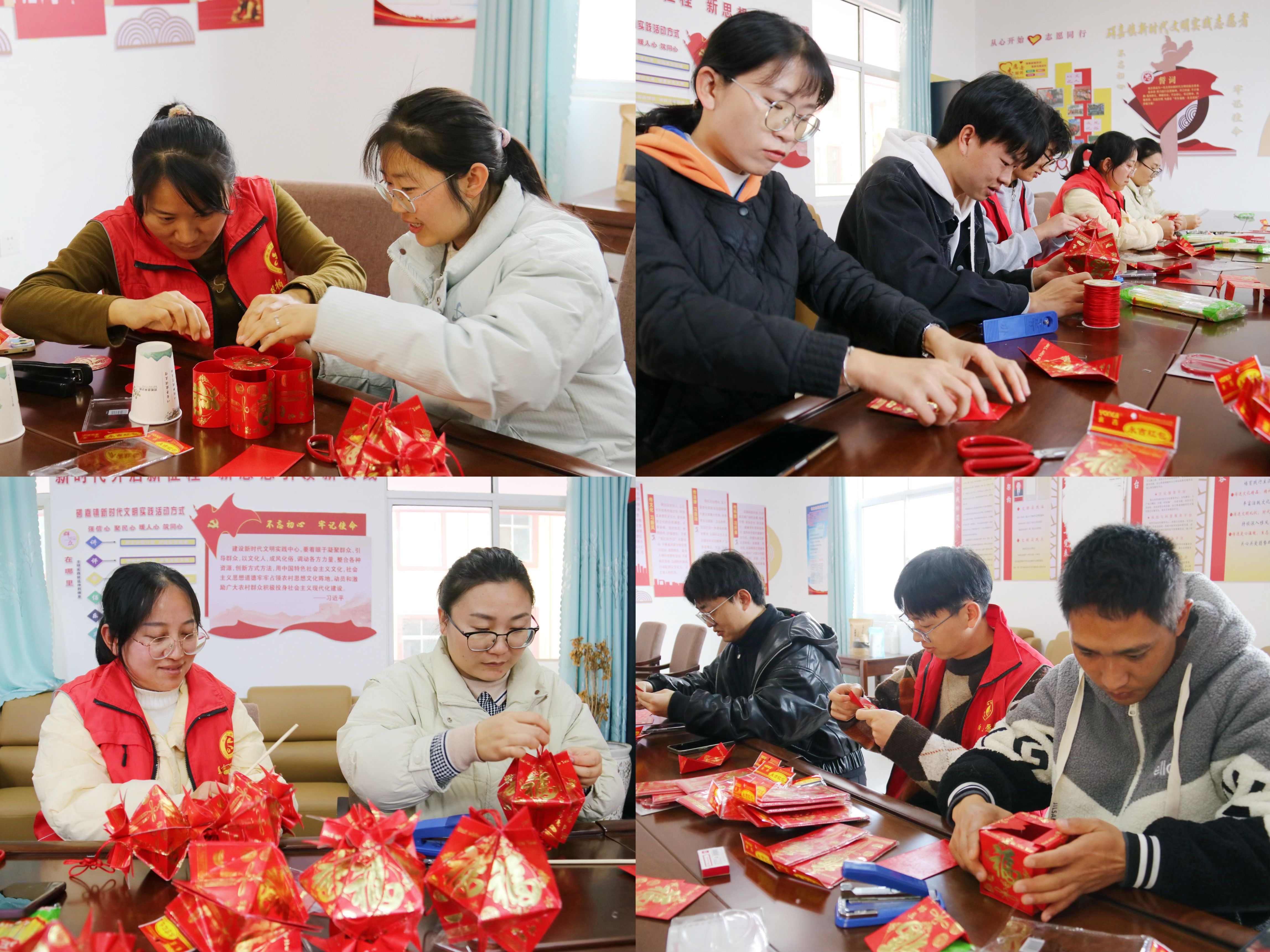 元宵花灯巧手做。花灯制作现场,工作人员向大家发放了制作灯笼的材料,并讲解灯笼的制作步骤和注意事项。拿到材料后干部职工们个个摩拳擦掌,跃跃欲试,认真的折叠、粘贴、穿绳等,操作步骤有条不紊、井然有序。在制作过程中,大家还互相交流创意、分享技巧,现场氛围既热烈又融洽。不一会儿,一盏盏造型各异、色彩鲜艳的花灯逐渐成型,现场洋溢着欢乐、祥和、喜庆的气氛。