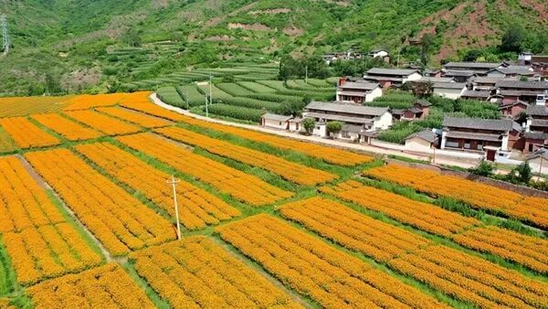 清晨, 双柏县大庄镇大罗块村的民族文化广场上,各族村民伴着朝阳舒展筋骨,孩子们在健身器材旁嬉笑打闹;田间地头,万寿菊铺就金色花海,青蚕豆挂满枝头,农户们忙着采收晾晒;村道两旁绿树成荫,白墙黛瓦的民居错落有致,污水管网隐于地下,一幅“望得见山、看得见水、记得住乡愁”的和美乡村画卷在群山间铺展。“以前村里路不好走,闲下来没处去;现在道路硬化到家门口,文化广场能跳舞看戏,日子过得比蜜甜!”谈及变化,老党员杨正发感慨道。
