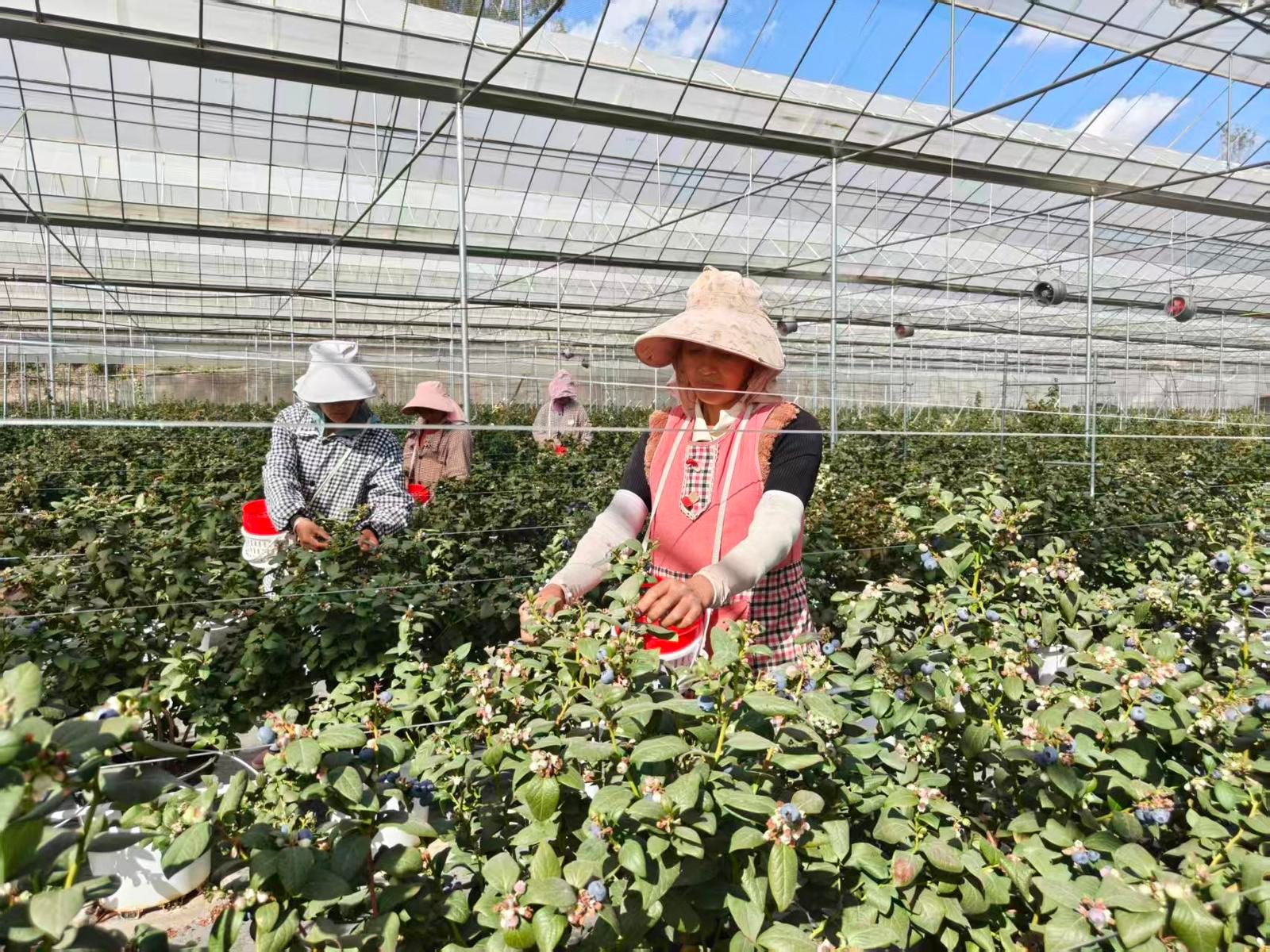 谁能想到,这片“聚宝盆”曾是闲置的水泥厂旧址?2024年,双柏绿江农业有限公司看中这里的区位优势、土地资源和气候特点,投资打造了60余亩绿色数字化蓝莓基地。如今,55座标准化大棚整齐排列,智能冷库随时可用,3万余株“花香25”优质品种扎根沃土,今年预计产果50吨,产值在400万元左右。工业旧址的“绿色转身”,让土地重新焕发了生机。