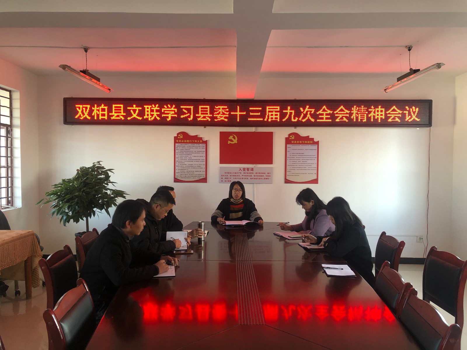 文联主席王雯君要求,全体干部职工要进一步统一思想,凝心聚力,从四个方面贯彻落实好县委十三届九次全会精神:一是全面加强文联自身建设。坚持“二为”方针和“双百”方向,树立创新精神,承担起推动文化创造的历史责任,建立健全文联下设的各个协会管理机制,吸纳新会员,发展壮大队伍,不断加强培训,引导我县文艺爱好者争做“德艺双馨”的文艺工作者;二是大力开展惠民文艺活动。开展文艺面向基层的文艺惠民、文艺为民、文艺乐民等文艺下乡活动,丰富广大人民群众精神文化生活,增强群众幸福指数;三是切实加强文艺园地建设。举办各艺术门类培训班,开展文艺采风活动,继续做好《哀牢山文艺》《彝乡文化》的编辑出版工作,为广大文艺爱好者提供习作园地和平台,大力培养双柏文艺人才,创作出人民喜闻乐见的优秀作品,努力打造本土文化品牌,力争在出精品上有所突破;四是积极开拓双柏文艺途径。紧紧围绕县委县政府发展大局,拓宽文联工作新思路。开辟文学艺术发展新途径,将文艺事业与旅游文化、历史传承、环境资源、民俗传统、百姓生活等因素联系起来,推动文艺与全县各项事业的融合发展。