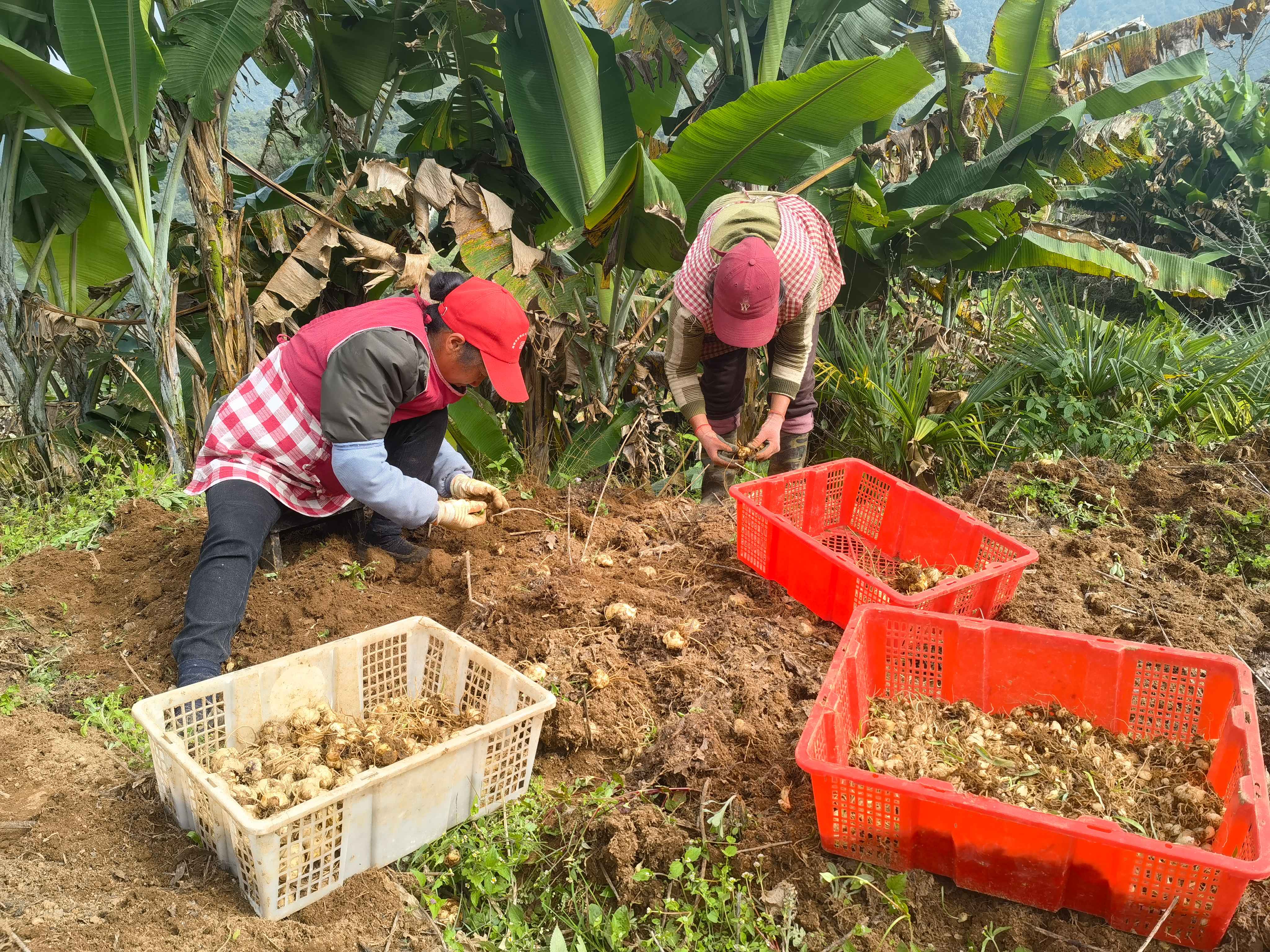 “今年我们采取‘党支部+合作社+种植大户’的模式,高标准打造百合种植示范基地40余亩,每亩产量达到了3000斤以上。目前市场收购价是每斤35元,每亩的纯利润在20000元左右,明年我们将动员更多的农户参与进来,扩大种植规模,增加村民收入。”新厂村委会党总支书记张艳珲不时穿梭在田间,指导村民采挖百合,分拣装筐,并现场称重装车。随后,大批的新鲜百合将从(石咢)嘉镇直接运往贵州,进行下一步加工。