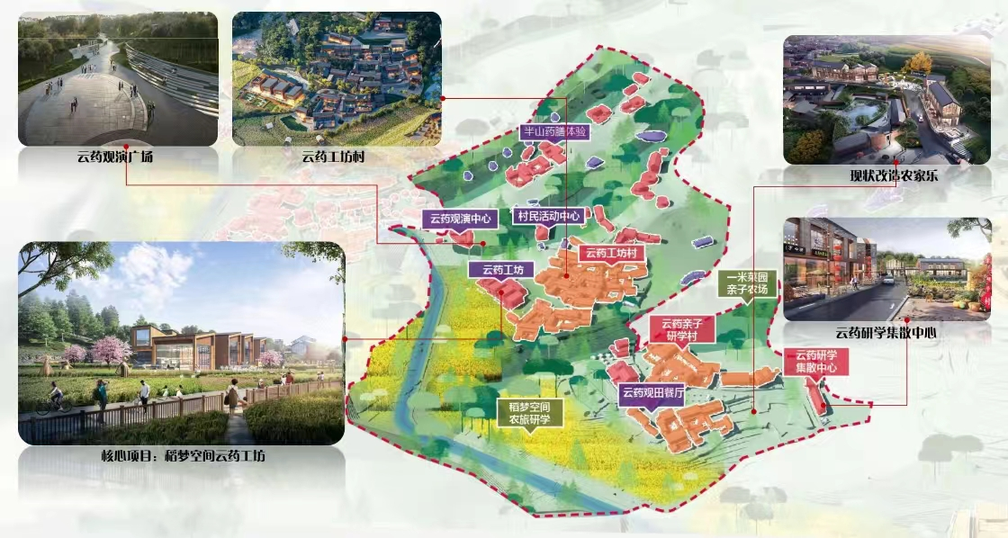 依托老李家村和茨菇坝村的自然现状和资源情况,打造集研学、体验、观光、休闲为一体的农旅休闲研学示范区,主要包含彝药亲子研学村建设项目、彝药工坊村建设项目、稻梦空间农旅研学基地建设项目、彝药工坊展示馆建设项目和研学集散中心建设项目。其中:彝药亲子研学村建设项目,建设地点位于茨菇坝村,总规划范围97.35亩,概算投资1750万元。项目主要包括现状村庄特色风貌及人居环境提升改造、市场主题培育项目,拟拆除现状民居1户,建设彝药亲子庄园、一米菜园亲子农场等;彝药工坊村建设项目,建设地点位于茨菇坝村,总规划范围约73.9亩,概算投资2340万元。项目建设包括现状村庄特色风貌及人居环境提升改造、新建及改造彝药家庭工坊、村民活动中心、彝药观演中心、半山药膳体验、彝药禅修谷等;稻梦空间农旅研学基地建设项目,建设地点位于茨菇坝村,总规划范围98亩,概算投资960万元。项目主要包括稻梦空间服务区和稻梦空间田园观光打卡体验区,新建彝药工坊、彝药观田餐厅、篝火烧烤营地、彝药研学暑校等;彝药工坊展示馆建设项目,建设地点位于茨菇坝村,总规划范围12.1亩,概算投资490万元。项目主要包括对现状水田进行改造成七彩稻田,新建一处彝药活态演示工坊,新建加工工坊、乡镇合作社办公场地、村庄活动临时红白喜事场地等;研学集散中心建设项目,建设地点位于茨菇坝村,总规划范围6.2亩,概算投资800万元。项目主要包括新建一处研学综合集散中心,涵盖部分临街商铺、研学办公室和活动广场等。依托优美的山水田园、原乡村村落,建设稻梦空间服务区和稻梦空间田园精品旅游体验区,建成集农业观光、乡村体验、休闲娱乐为一体的河尾河稻田艺术空间。