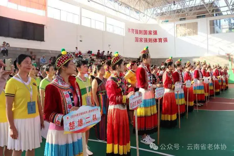 9月20日上午,2024年云南省老年人健身球操比赛在双柏开赛。来自全省12个州市和1个省级系统单位共198名运动员及组委会人员、裁判员、志愿者80余人参加活动。