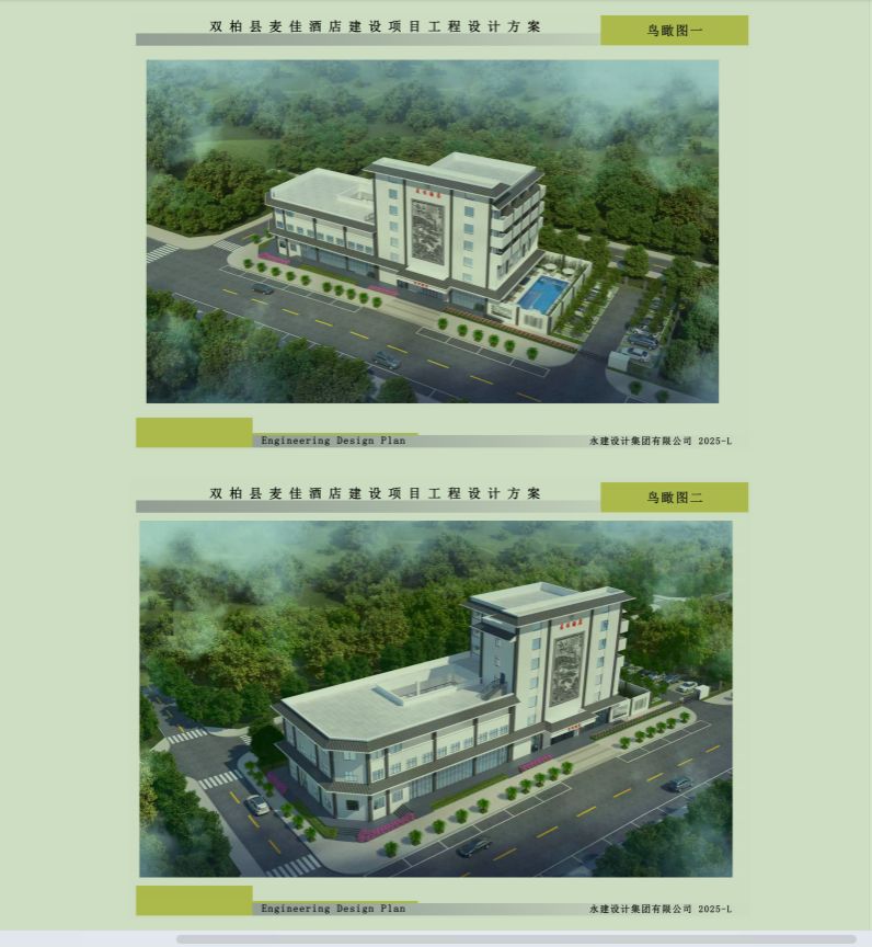 附图:总平面布置图、立面图、剖面图、鸟瞰图