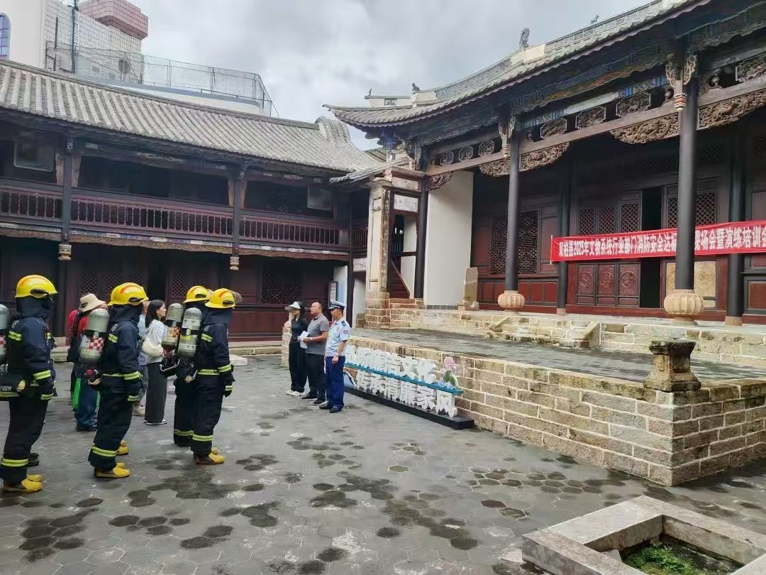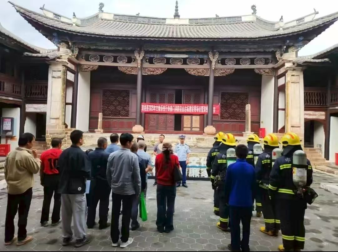 实战演练,效果显著。在省级重点文物保护单位大庄苏氏祠堂和县级重点文物保护单位妥甸镇罗韶祠堂的演练中,县文化和旅游局分管安全生产的副局长围绕文物系统安全作了动员讲话,强调了演练目的与任务。县消防救援大队指战员就消防救援具体环节和防范措施及应对突发火灾和消防水泵的使用等方面作了系统培训。随即,按照演练方案开展实地演练。县、乡、村三级相关单位干部及群众共计80余人次参与活动。