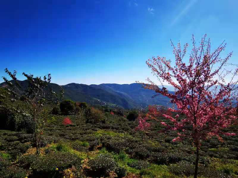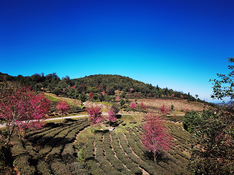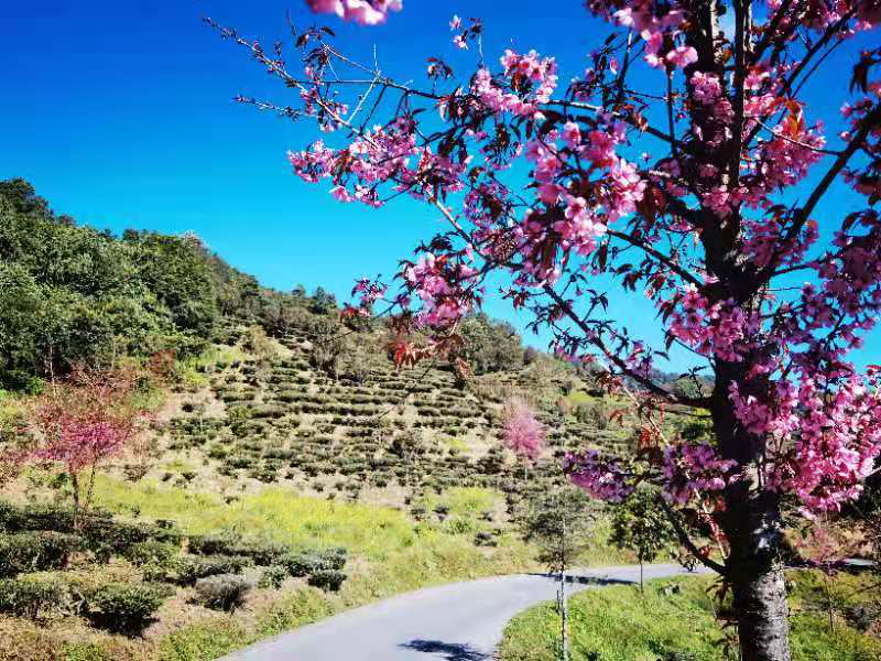 漫步白竹山茶山冬樱花海,体验李方村独特民族风情,享受白竹山天然氧吧,旅居锣笙湖半山酒店,双柏为您奉上冬日的第一份“温暖”。