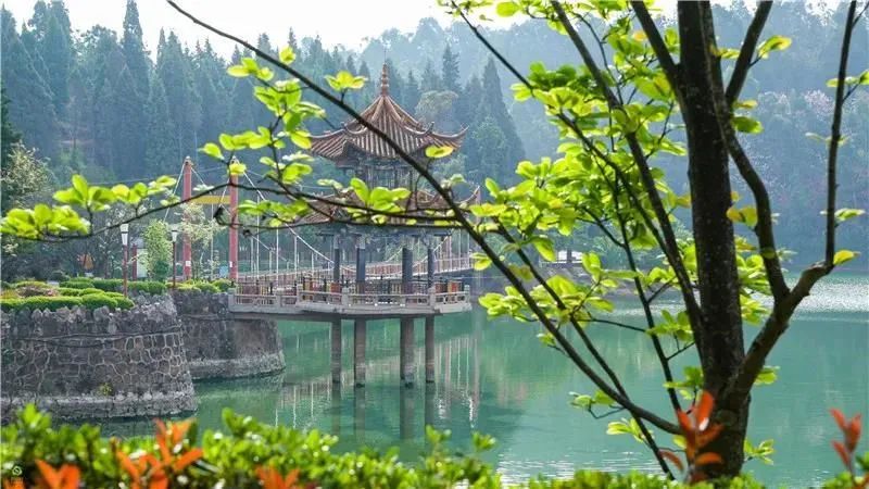 漫步湖边栈道,看山、赏花、观湖,周身被绿色包围,来自湖面的清风轻轻拂面,清凉舒爽。