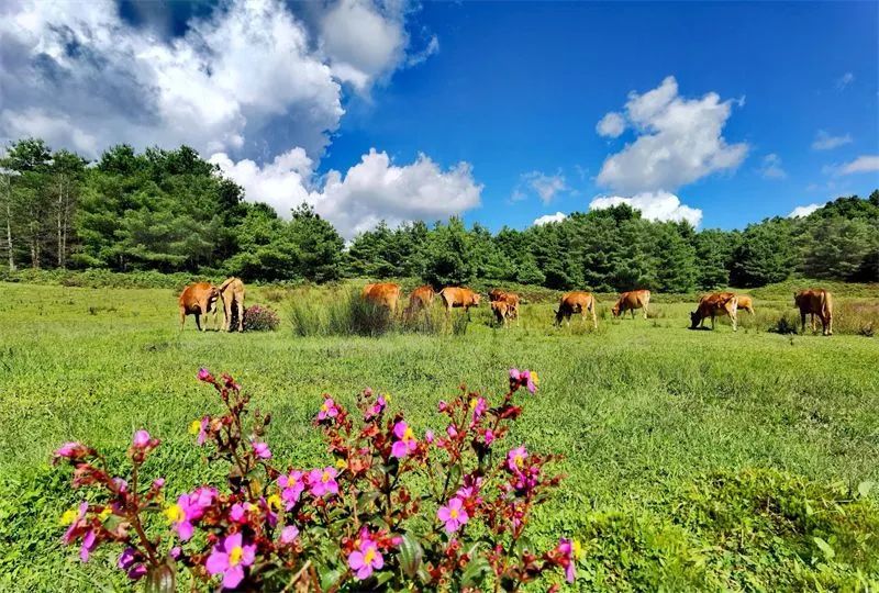 溪水潺潺、野花遍野、牛羊成群