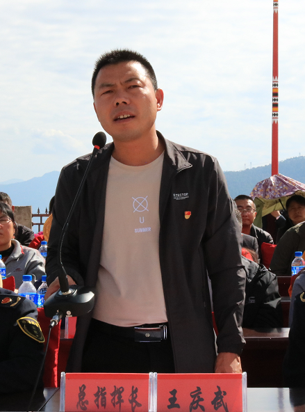 现场指挥长乡人民政府乡长张峻向总指挥长报告演练开始