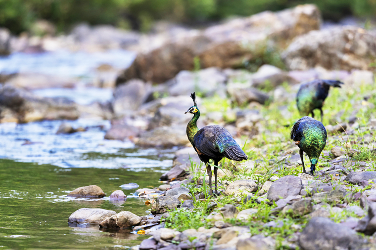 风起林浪,云入山岫。站在双柏县恐龙河自然保护区附近的一处坡地远眺,景色蔚为大观。没过多久,一群羽衣鲜艳的绿孔雀惊喜地闯入视野,它们时而踱步、时而鸣叫、时而低翔,倏忽展开硕大的尾屏,为哀牢风光增添了无限的灵动之美。