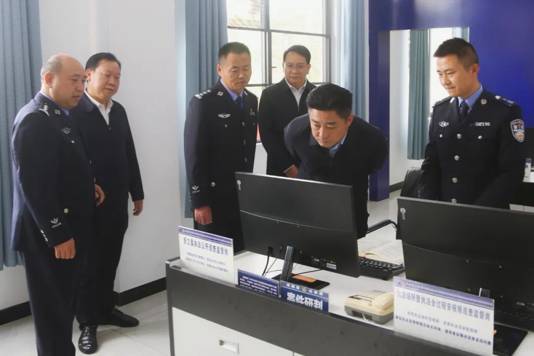 调研中,代绍斌局长首先向金鸿书记汇报了全县公安工作取得的成绩、存在的困难和下一步工作计划。听取汇报后,金鸿书记查看了双柏县公安局执法办案管理中心运行情况,对县公安局充分运用科技化管理,规范化执法工作给予充分肯定。