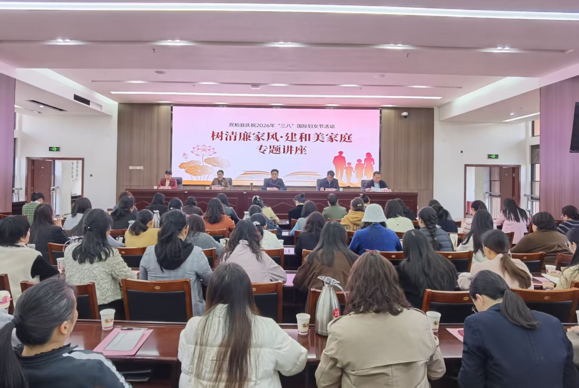 3月2日,双柏县在县委党校二楼报告厅举办庆祝2026年“三八”国际妇女节活动暨“树清廉家风 建和美家庭”专题讲座。县委书记金鸿出席活动并讲话。县人大常委会副主任、县妇联主席李喆主持。县委常委、县委办公室主任杨辉,县人民政府副县长李志强,县政协副主席苏燕出席活动。