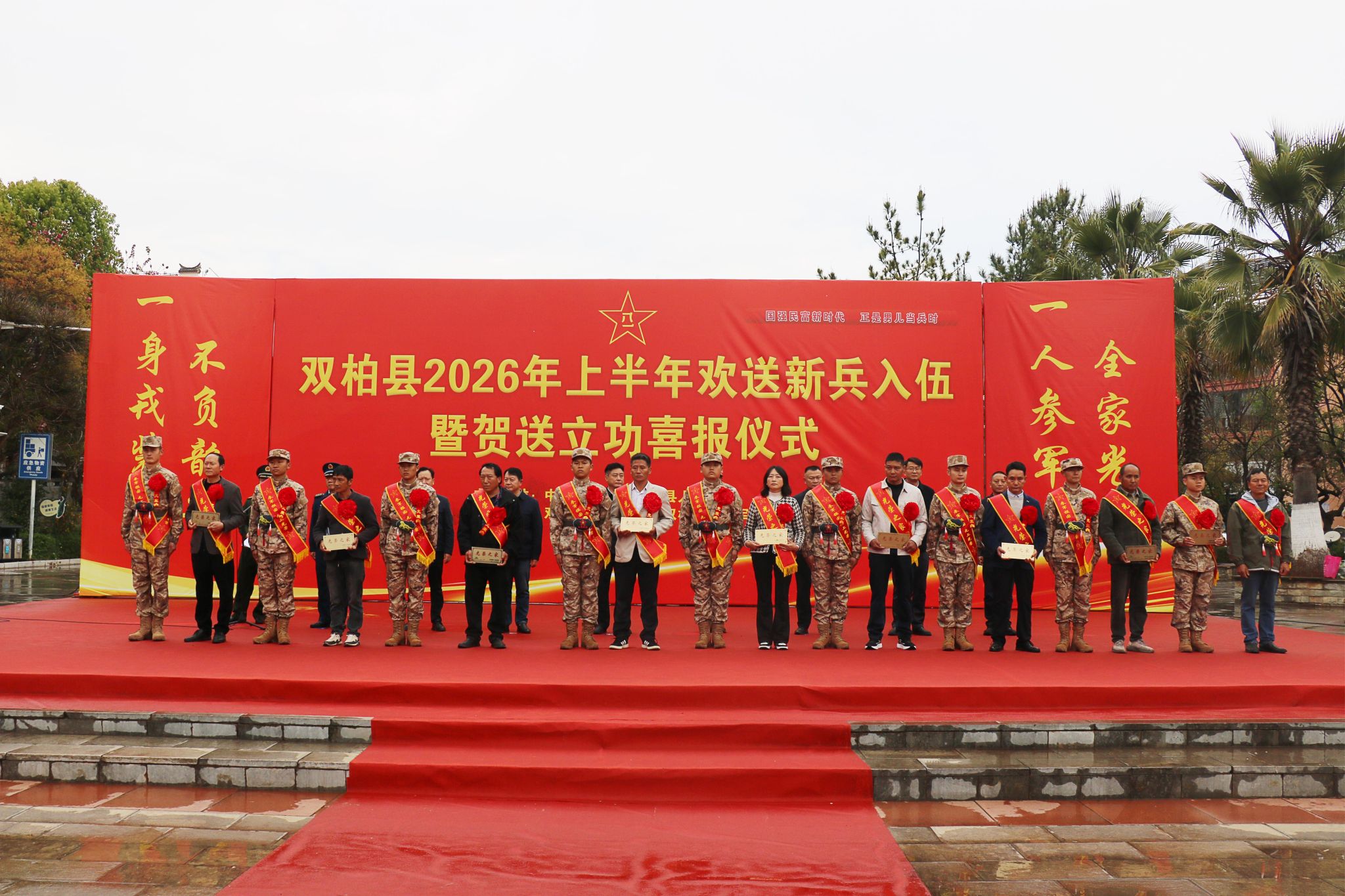 为弘扬拥军优属优良传统,营造“一人参军、全家光荣”的社会氛围,同时表彰立功受奖现役军人家庭,增强军人军属荣誉感。3月17日下午,双柏县在县城查姆广场隆重举行2026年上半年欢送新兵入伍暨贺送立功喜报仪式。