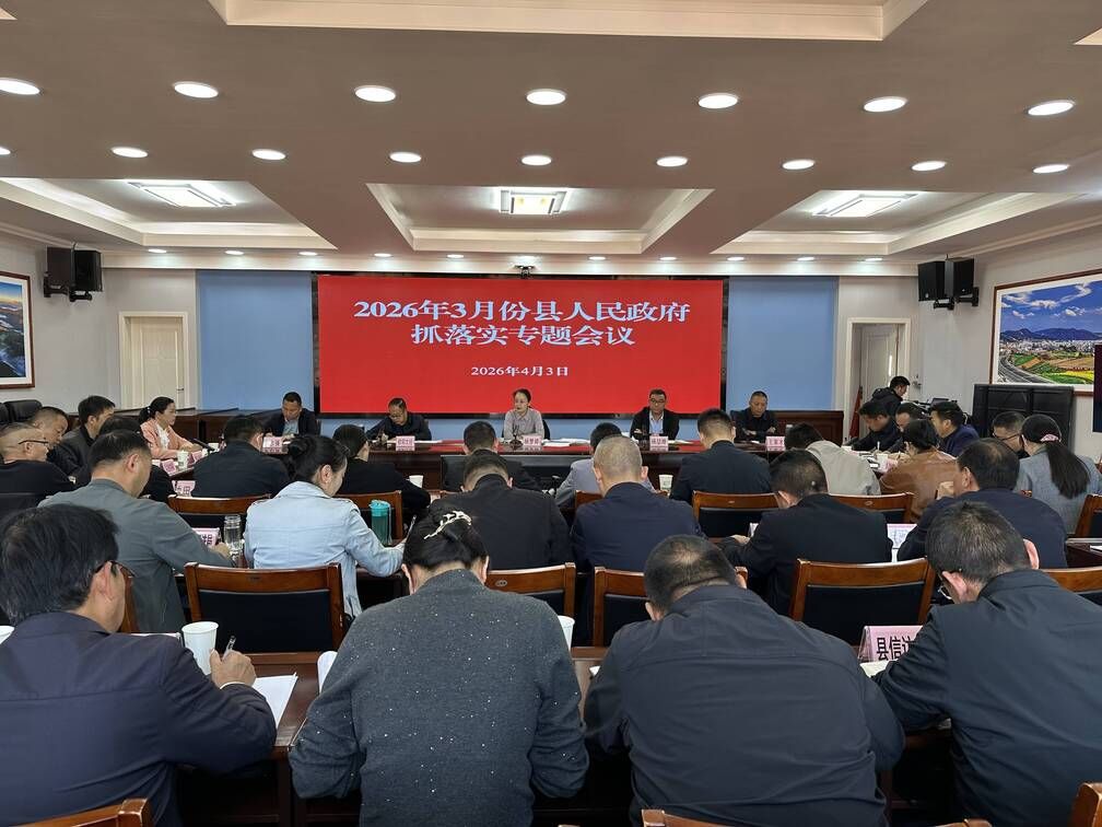 4月3日上午,2026年3月县人民政府抓落实专题会议在县委、县政府六楼大会议室召开。