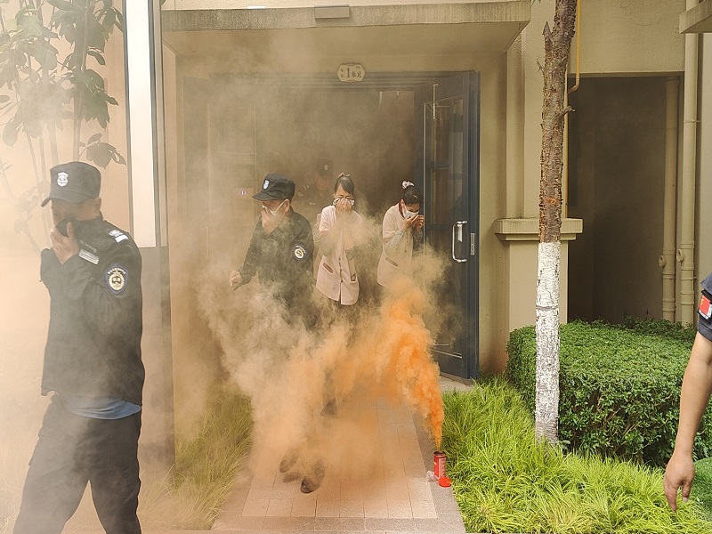 讲解结束后,模拟火灾发生导致楼道浓烟蔓延开展演练。消防救援人员解救和疏散被困人员,同时介绍了灭火器的种类和适用范围,手把手教学,演示灭火器的使用方法,讲解了“提、拔、握、压”操作要诀,组织开展了灭火体验,让大家在实操过程中全面掌握消防器材的正确使用方法,确保在日常生活中遇到紧急情况时能够沉着冷静正确处置。