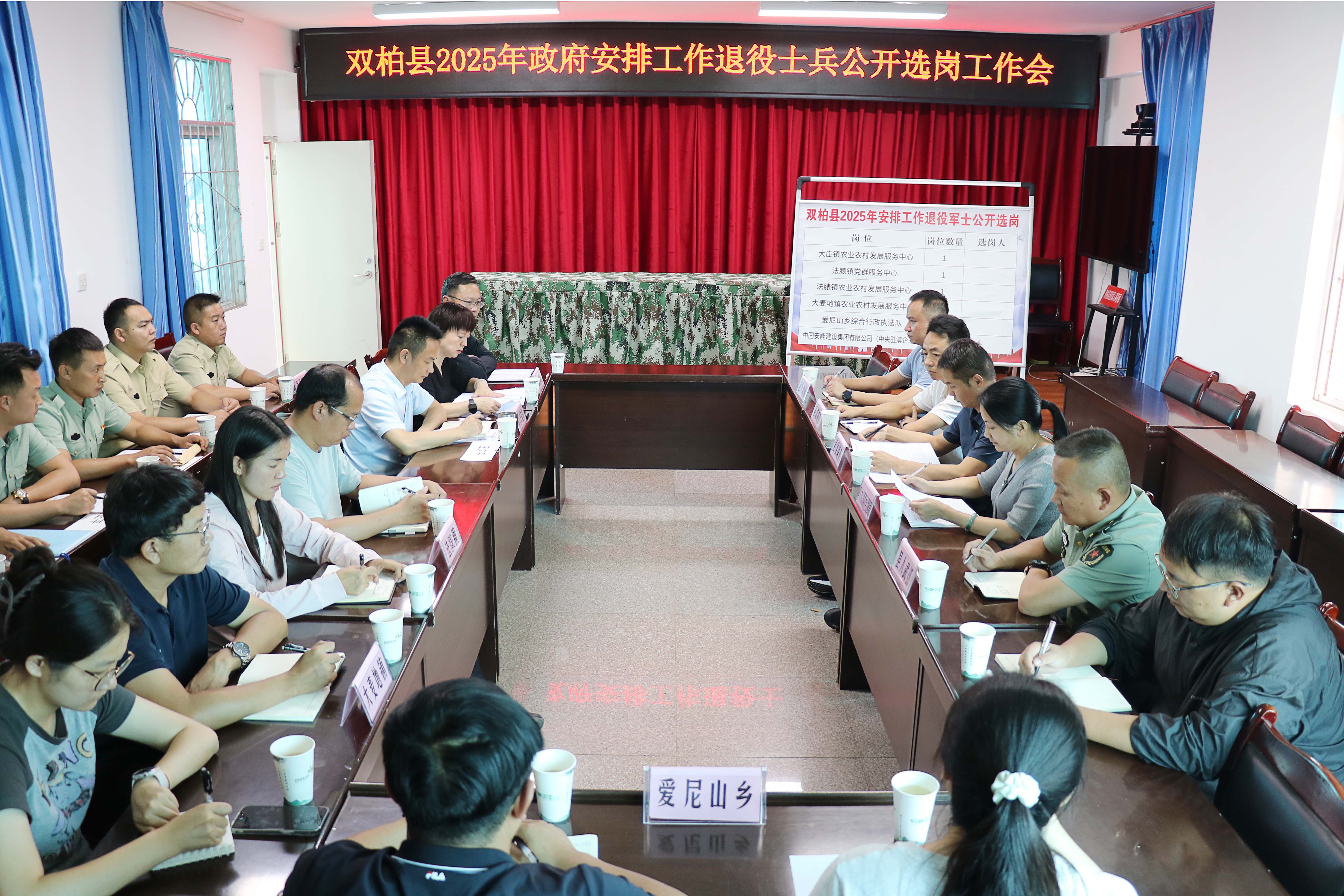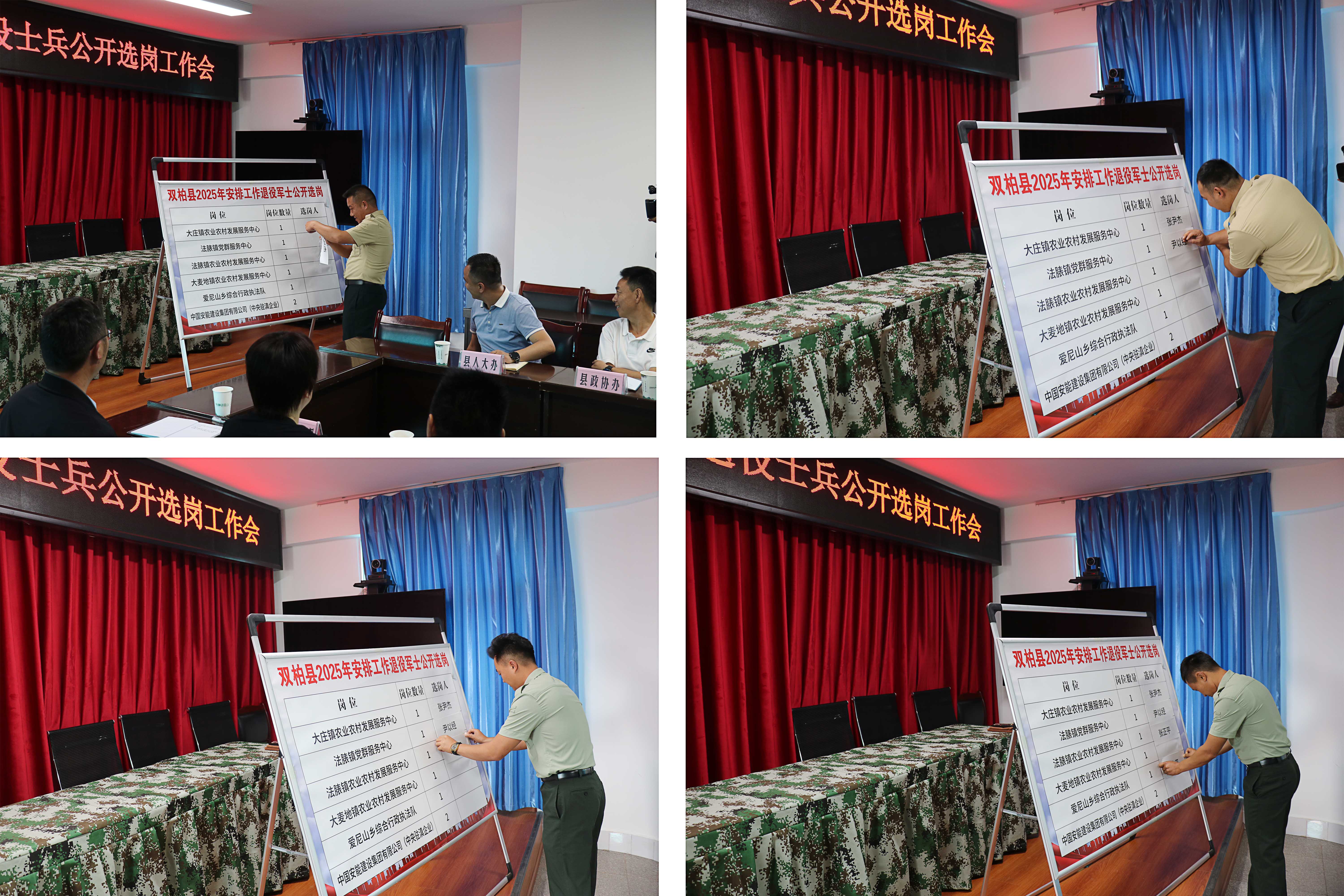 为切实做好2025年度政府安排工作退役军士安置工作,7月11日,双柏县召开2025年符合政府安排工作退役军士选岗会议。县人武部、县委编办、县人社局、县退役军人事务局等退役军士安置工作领导小组成员单位,拟接收安置单位相关领导和人事专干,安置退役军士家属共30人参加选岗会议。同时整个选岗安置环节还邀请了县人大常委会办公室、县政协办公室全程参与监督。