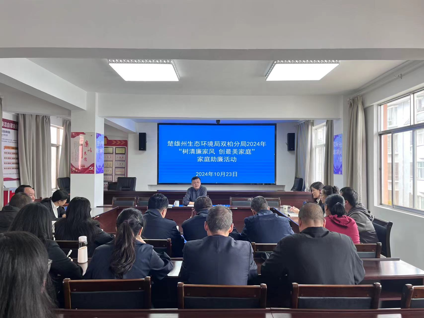为深入贯彻习近平总书记“廉洁齐家”思想,2024年10月23日,楚雄州生态环境局双柏分局组织全体干部职工及其家属,开展“树清廉家风 创最美家庭”家庭助廉活动,以好家风促党风政风带社风民风。