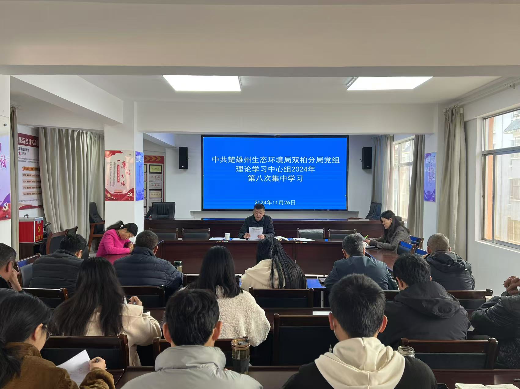 2024年11月26日上午,中共楚雄州生态环境局双柏分局党组举行理论学习中心组2024年第八次集中学习,党组书记、局长李铭主持会议,全体干部职工参加会议。