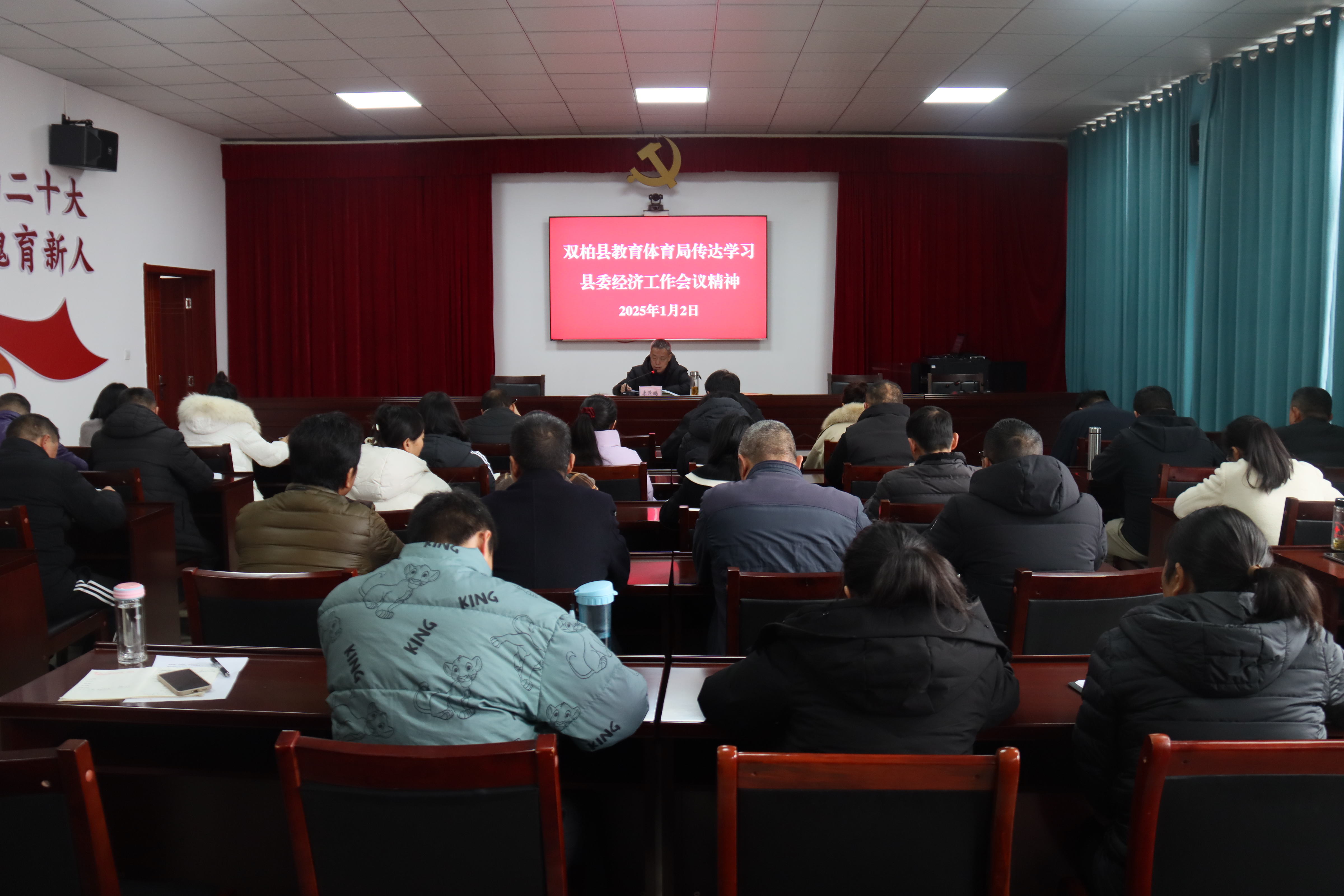 2025年1月2日,双柏县教育体育局召开会议传达学习县委十四届九次全会精神、县委经济工作会议精神。县教育体育局党组书记、局长李泽鹏主持会议并讲话。