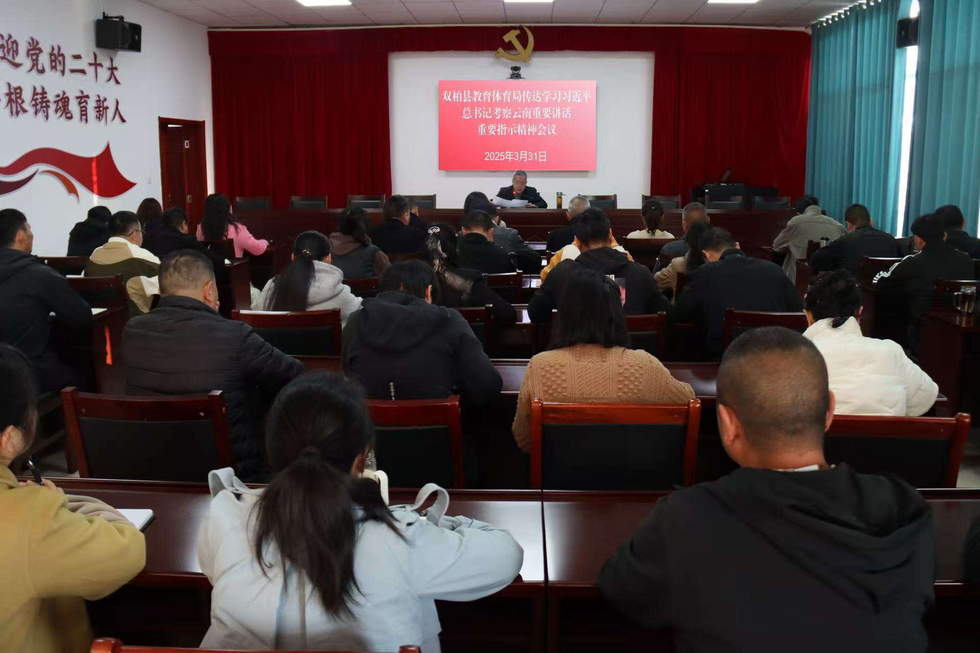 3月31日上午,双柏县教育体育局传达学习习近平总书记考察云南重要讲话重要指示精神。县教育体育局党组书记、局长李泽鹏主持会议并讲话。