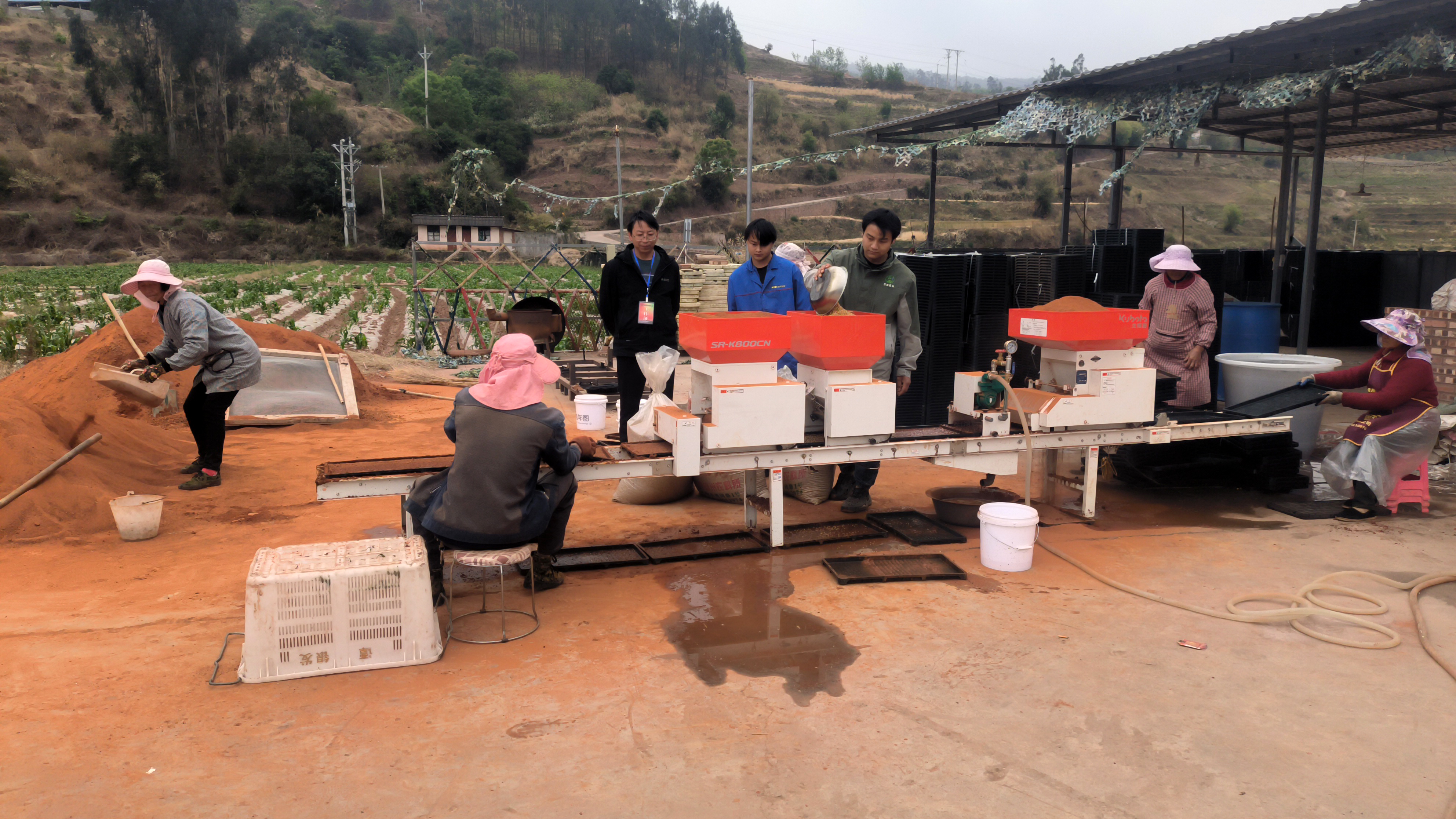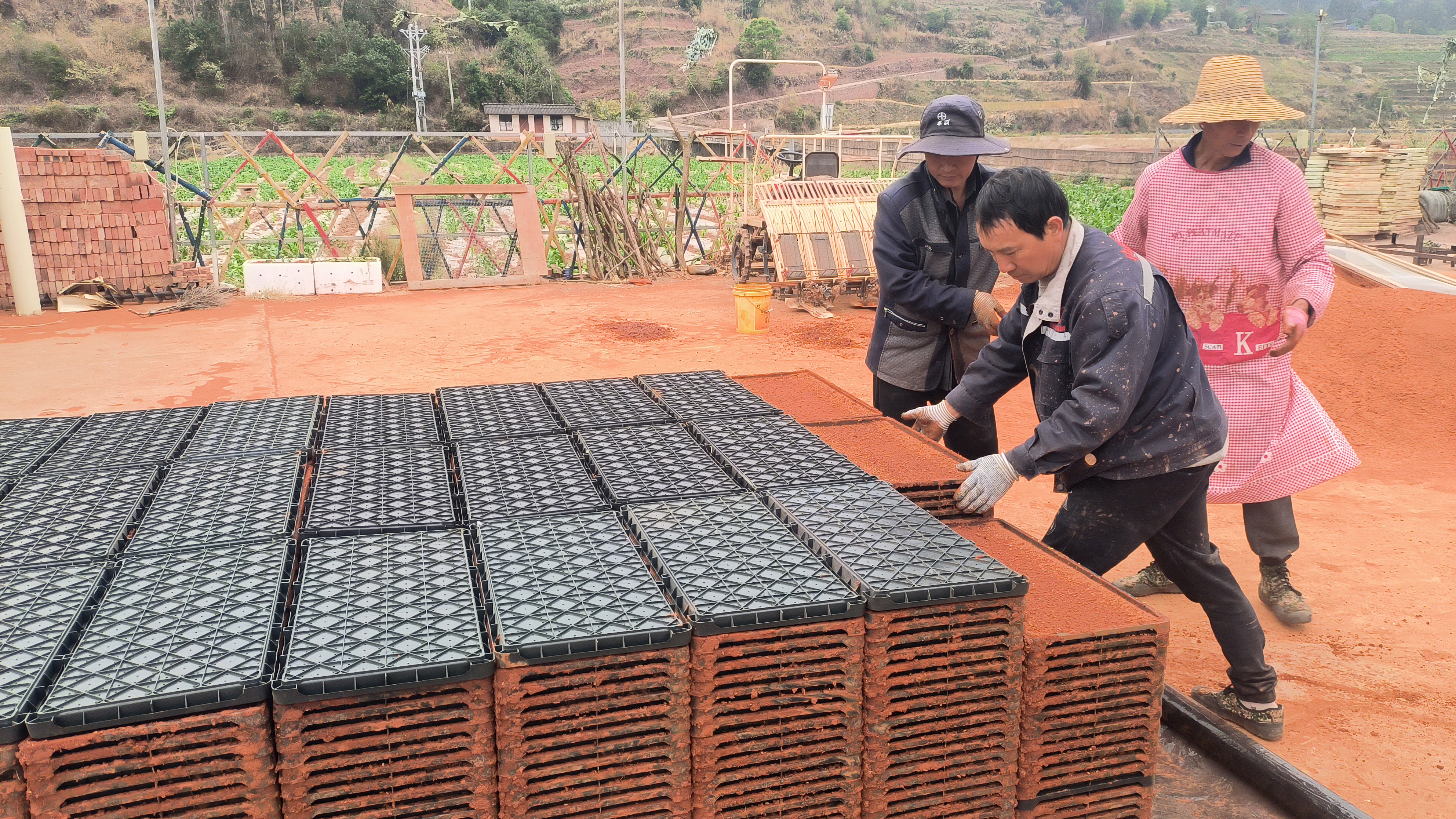 2025年4月1日,位于大庄镇普岩村委会大凹子村的“一亩田”种植基地,机器嗡鸣、人流熙熙,新引进的全自动水稻育秧播种机开足马力均匀播撒种子,精准高效地完成机械化播种作业,开启了双柏县种粮合作社机械化育秧新篇章。